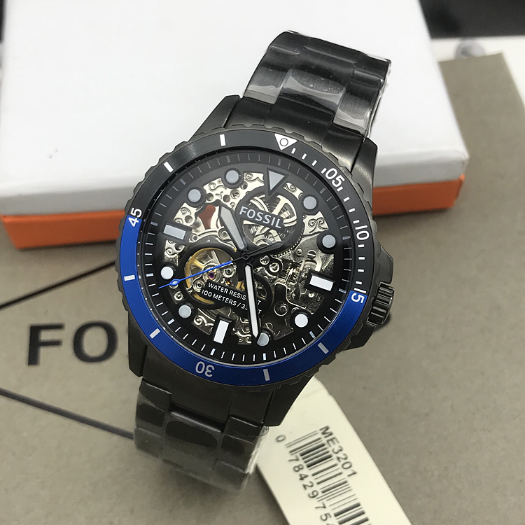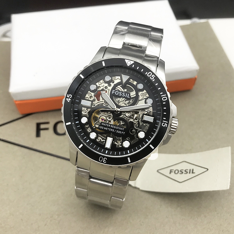 新款FOSSIL手表不锈钢商务休闲镂空自动机械表防水男表
