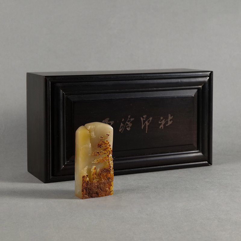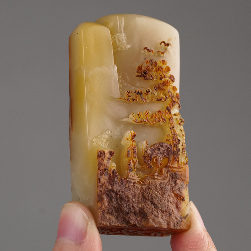 西泠印社社员姚伟荣篆刻闲章《喫茶去》寿山汶洋石巧雕松下牧牛名家手工篆刻印章成品精品商务礼品送礼收藏
