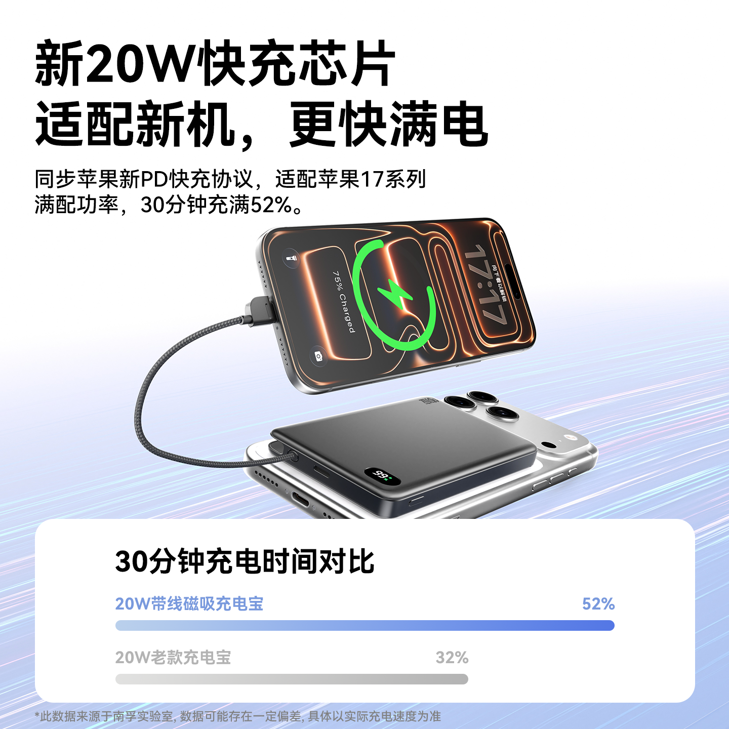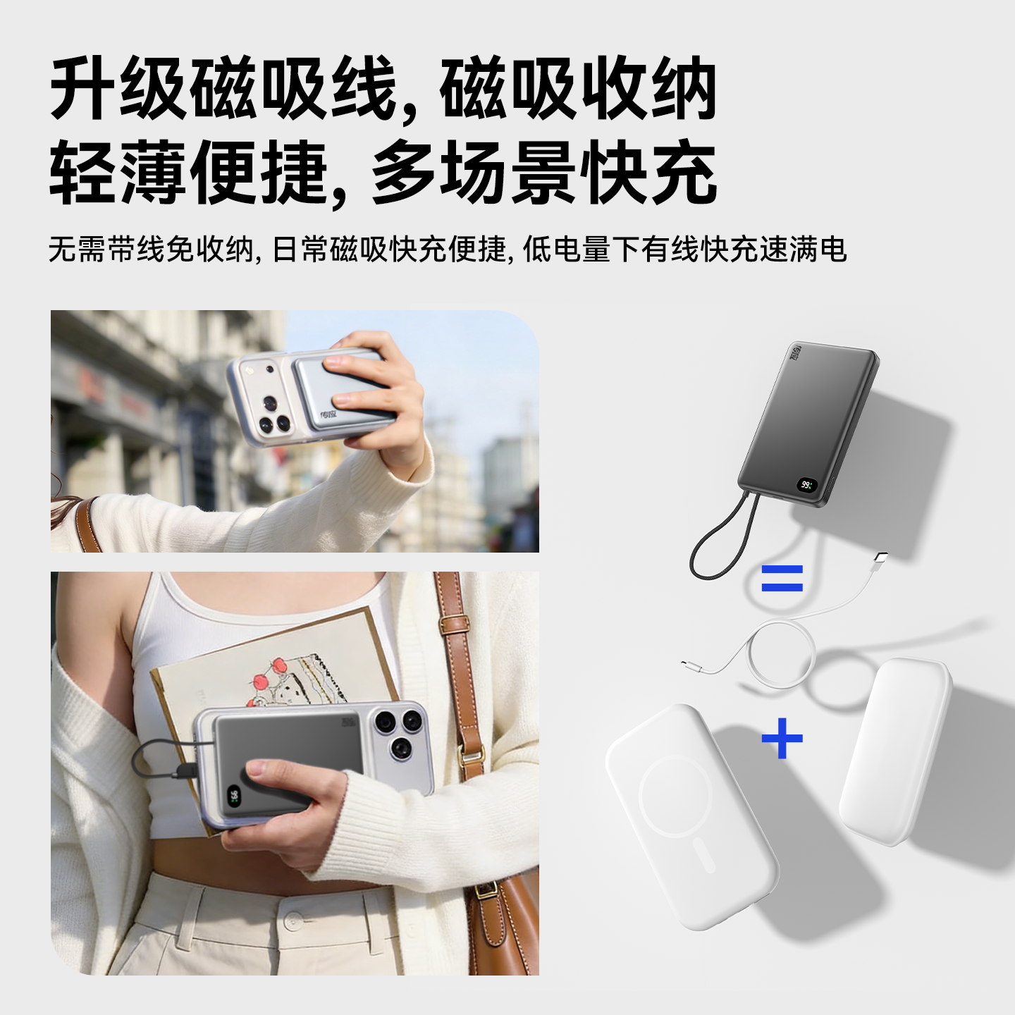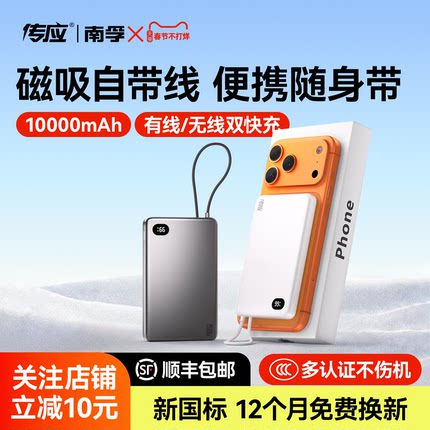 南孚传应磁吸充电宝自带线移动电源超薄快充自带线电宝官方大容量适用iPhone16苹果磁吸10000毫安PD20W