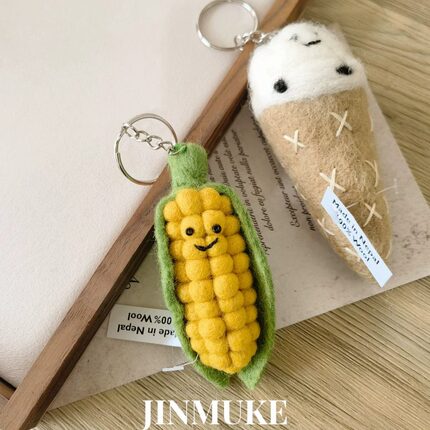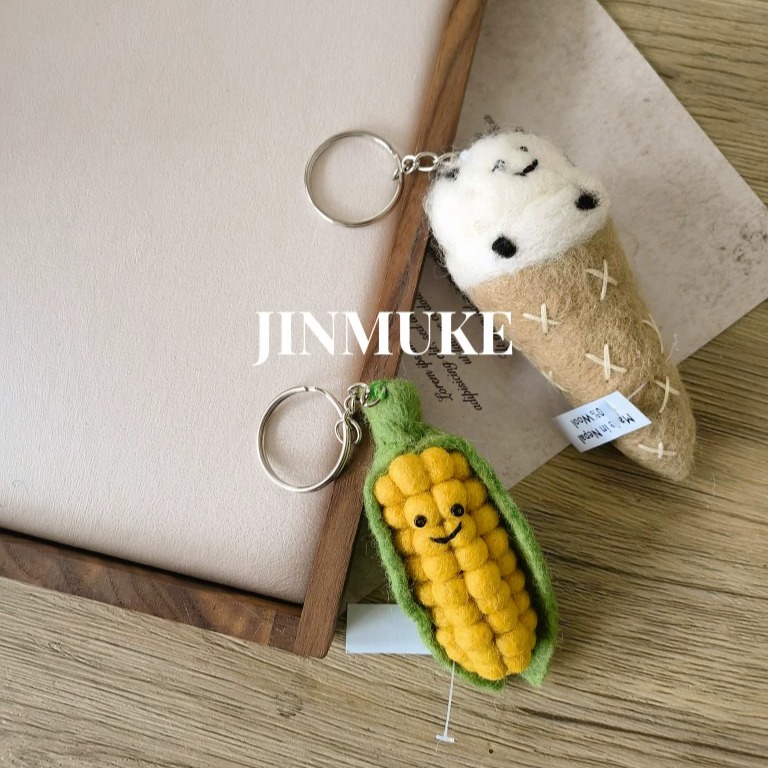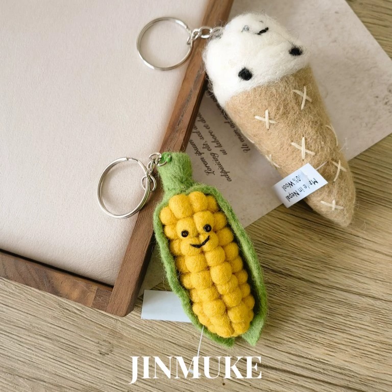 JINMUKE饰品韩国进口配饰可爱玉米冰激凌羊毛毡手工钥匙扣挂件新