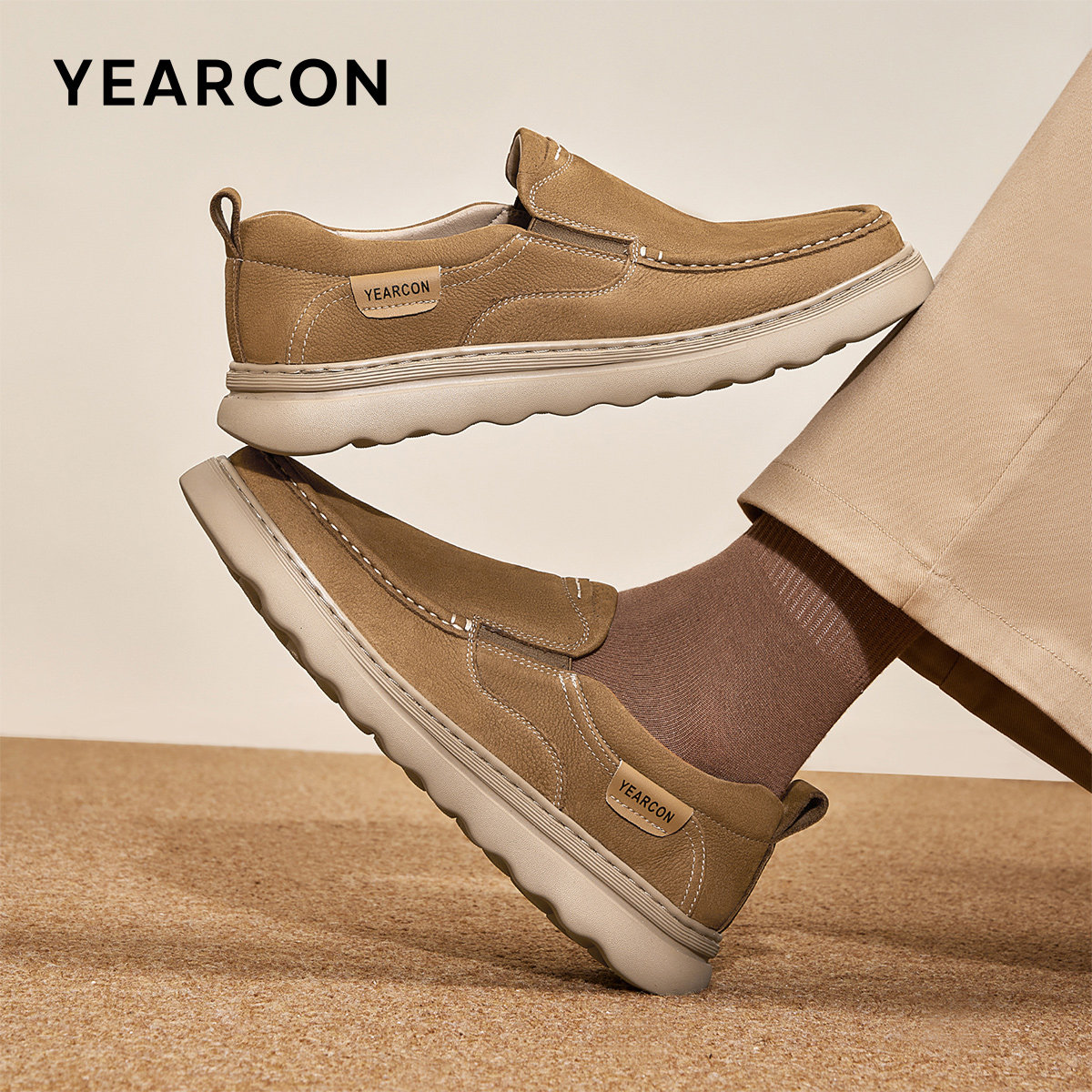 意尔康男鞋2025新款秋季男士软底复古休闲皮鞋一脚蹬爸爸鞋工装鞋