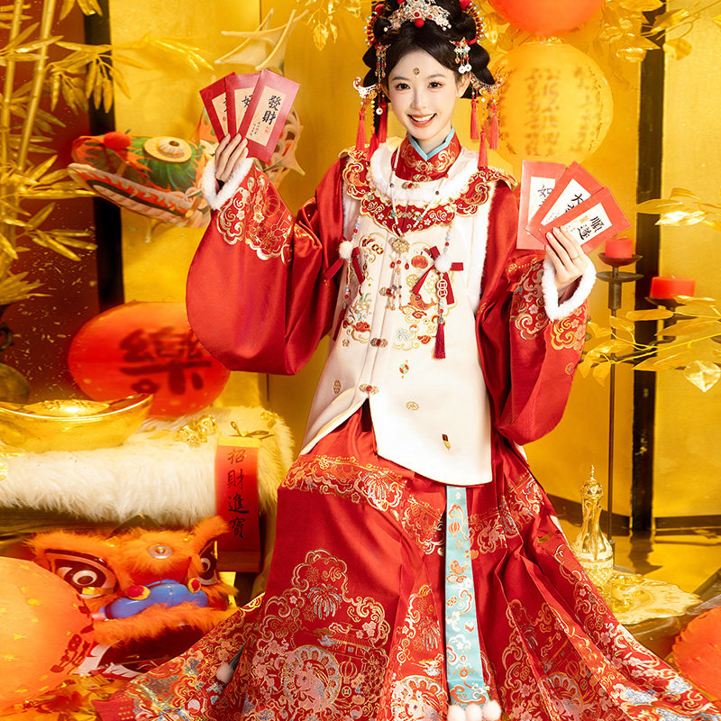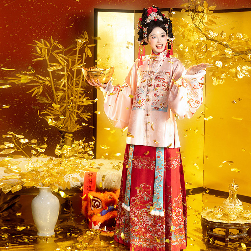 【重回汉唐金马迎福】竖领对襟袄比甲新中式秋冬马面裙女明制汉服