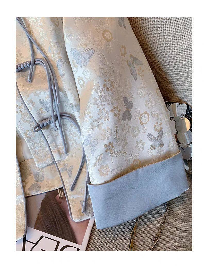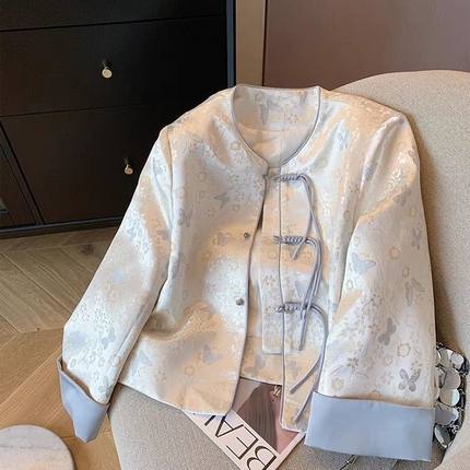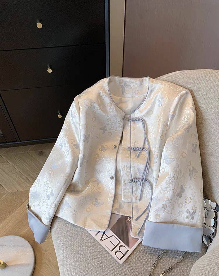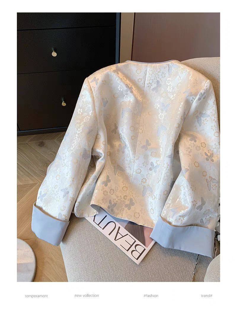 2025春秋新款百搭显瘦新中式蓝色蝴蝶盘扣短外套女中国风外穿上衣