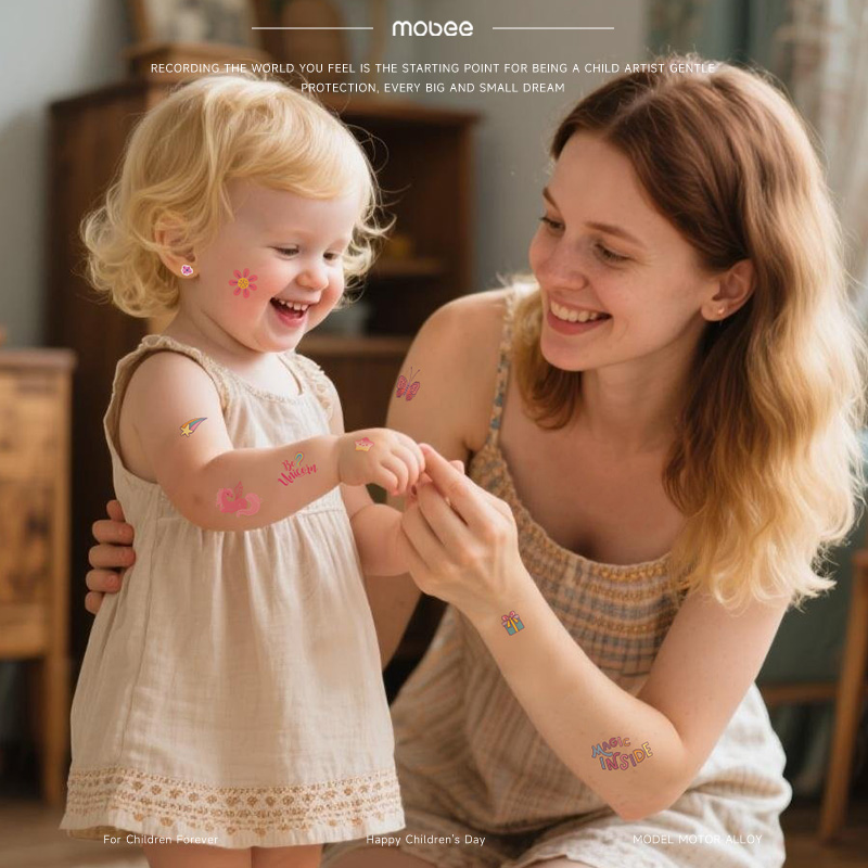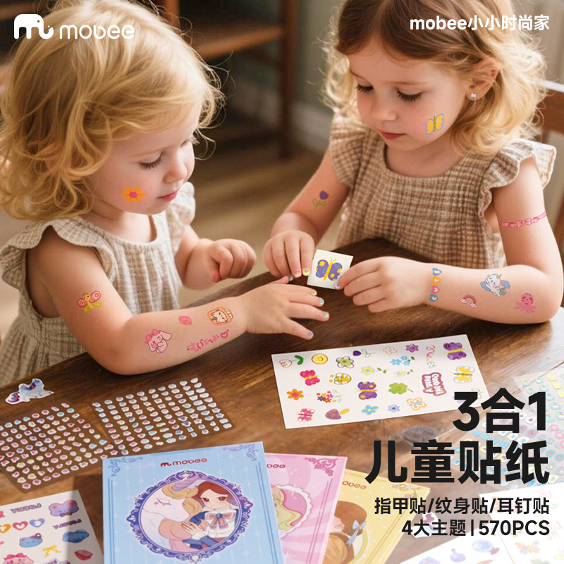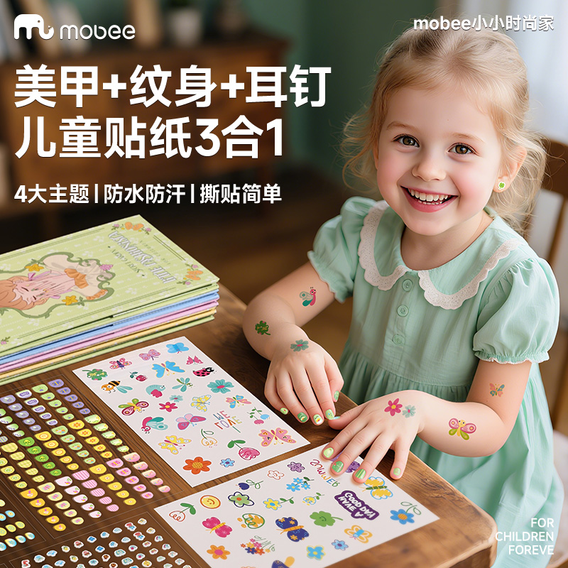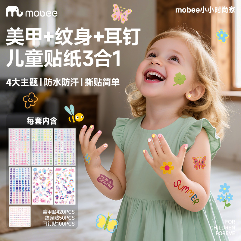 mobee儿童美甲贴片纹身指甲无毒无味女孩玩具宝宝卡通小学生礼物