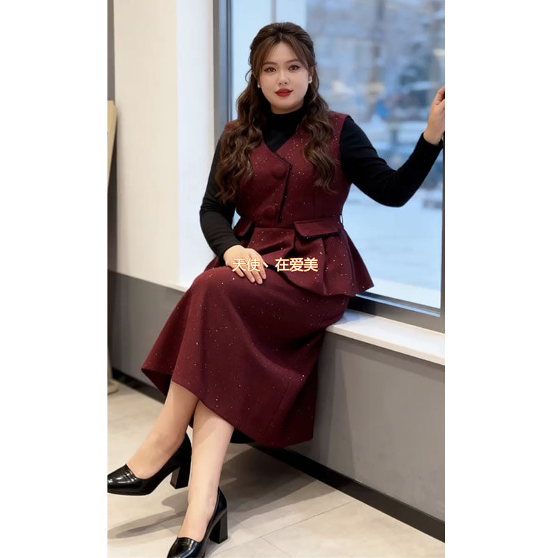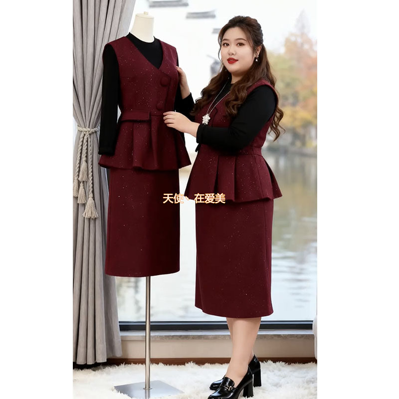 胖妹妹mm气质大码女套装秋冬新款时尚显瘦打底衫马甲半身裙三件套