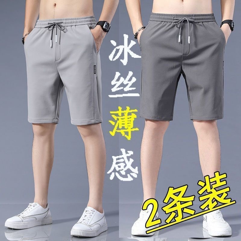 男士短裤夏季超薄款冰丝中裤宽松直筒运动七分裤休闲马裤五分裤子