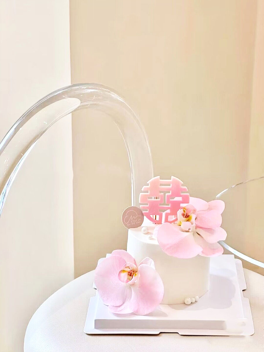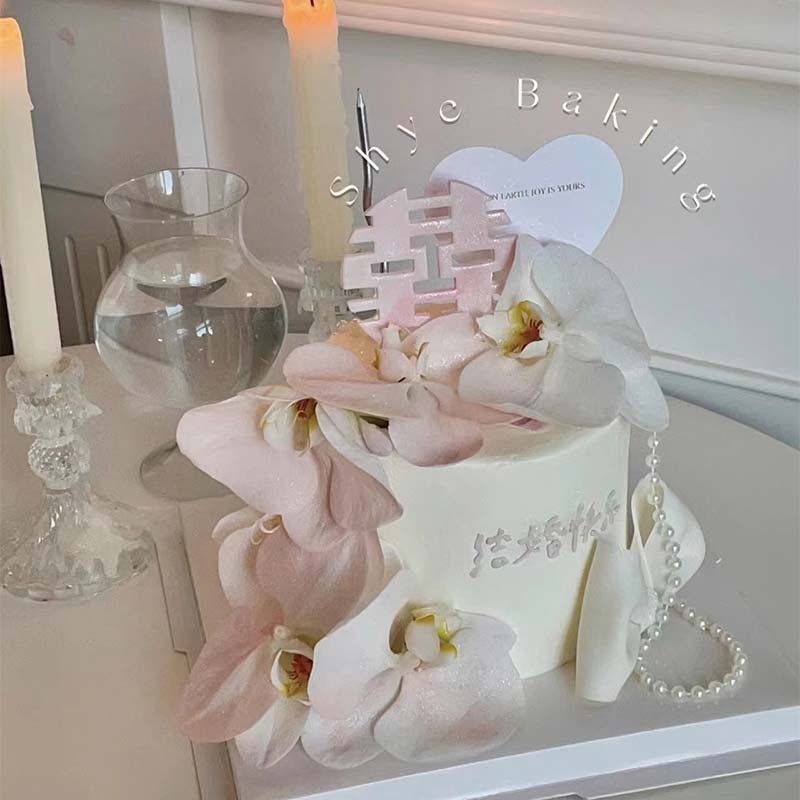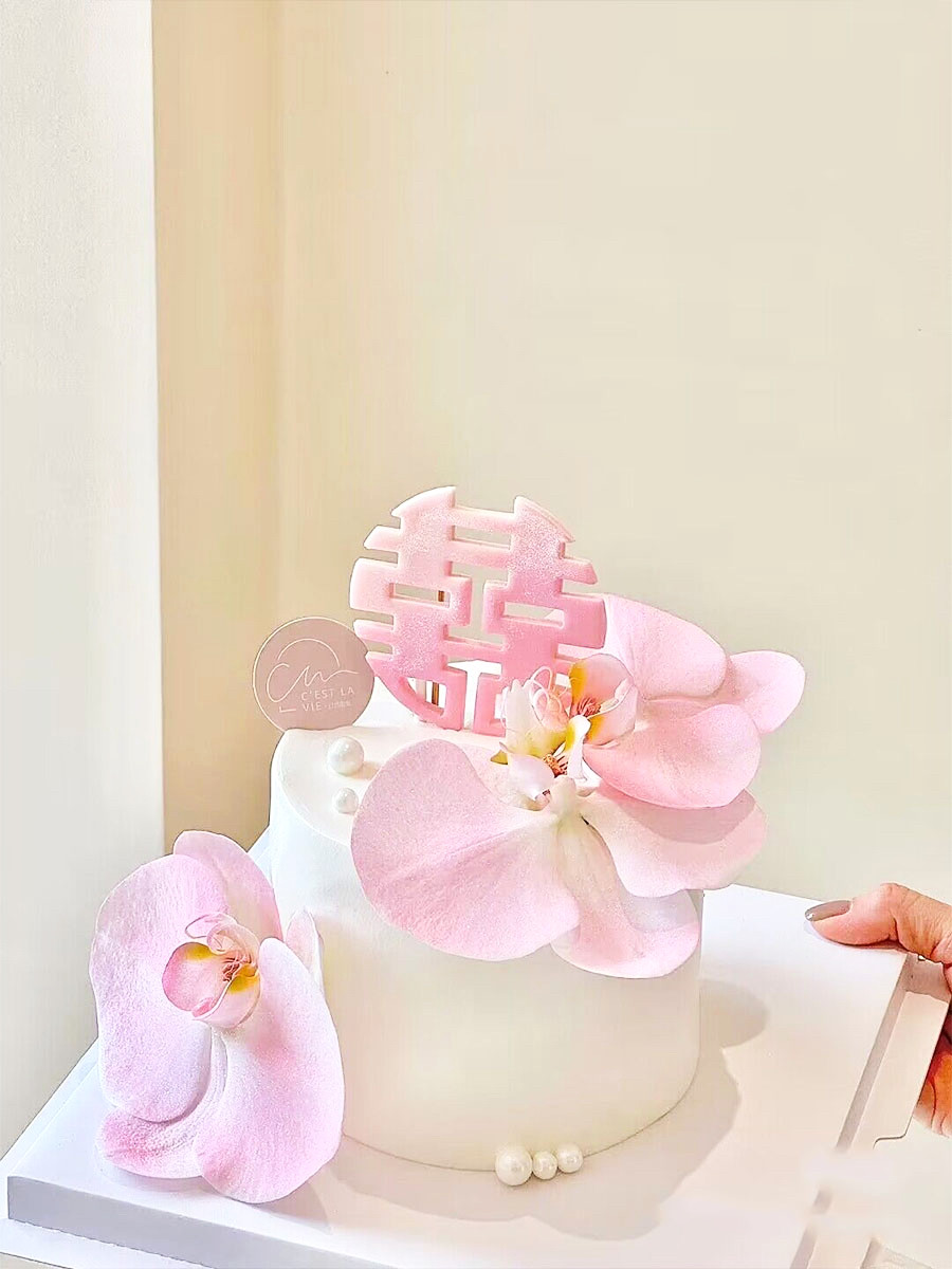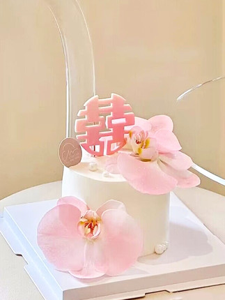 网红订婚结婚婚礼蛋糕装饰粉色系蝴蝶兰红双喜字甜品台插件插牌