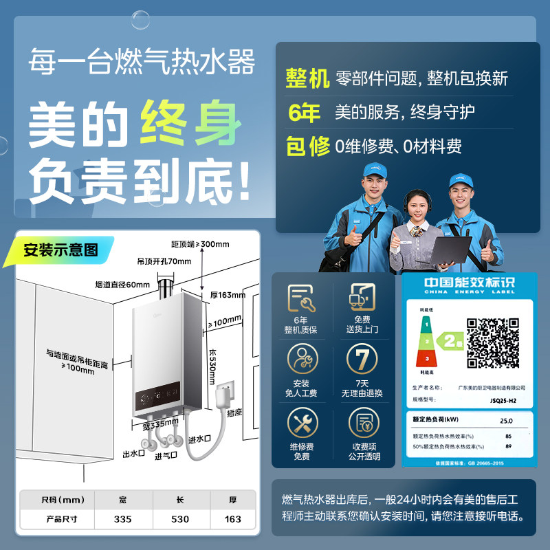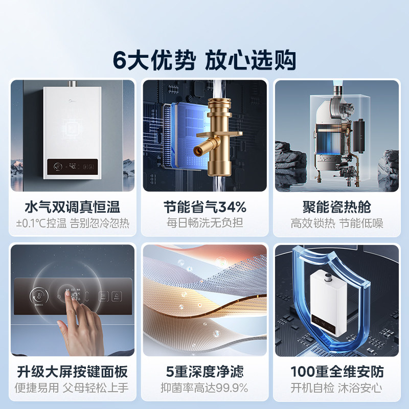 美的燃气热水器天然气13L家用洗澡恒温租房旗舰H2
