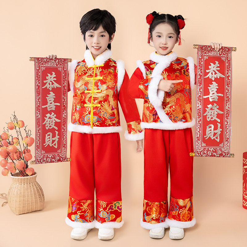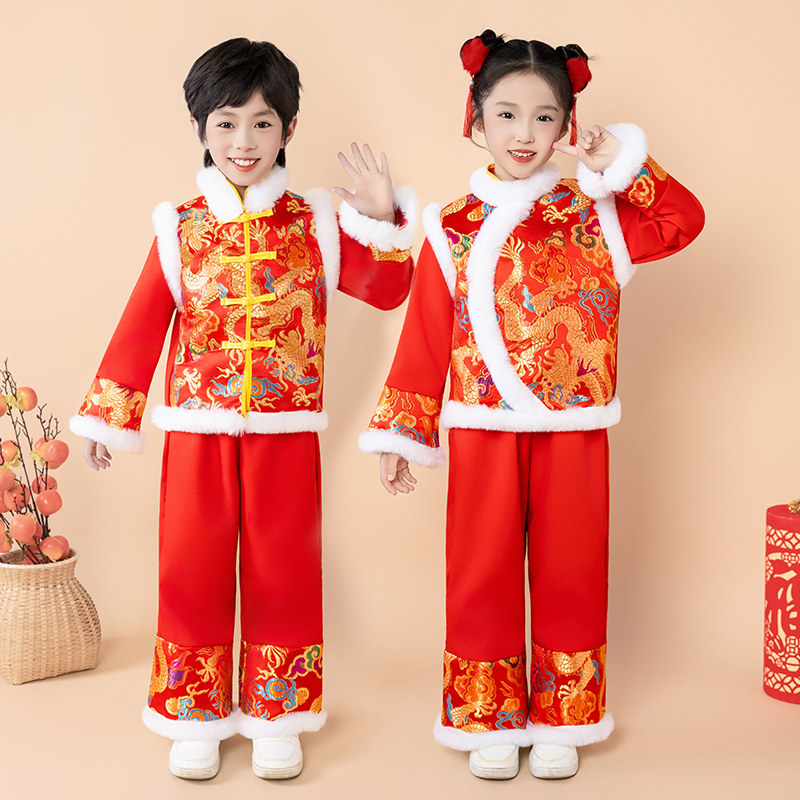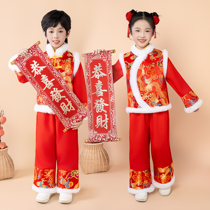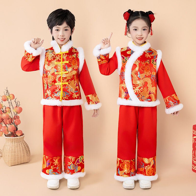 元旦儿童喜庆演出服中国风秧歌服开门红灯笼舞蹈表演服拜年服女童