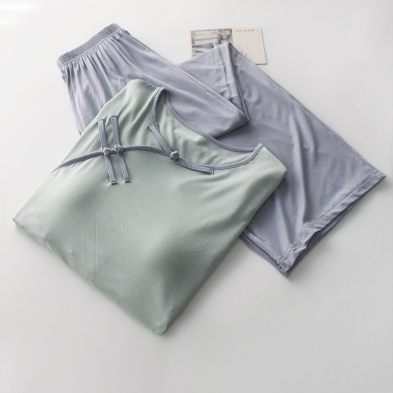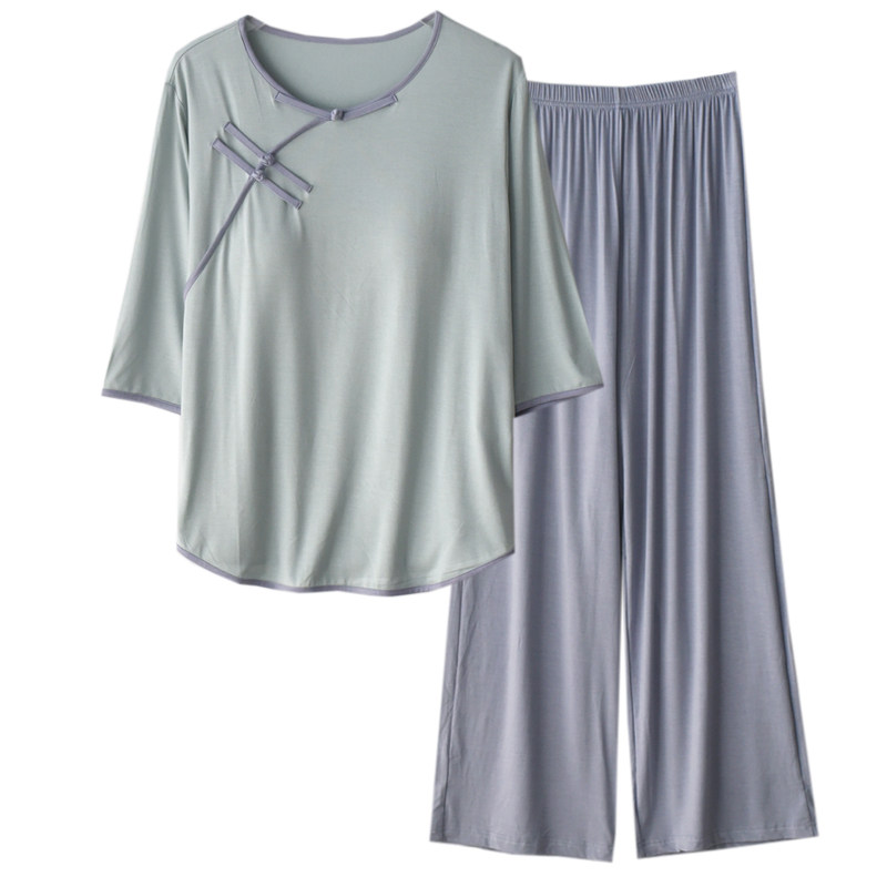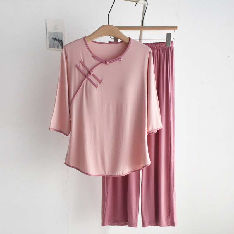 女莫代尔带胸垫新中式七分袖睡衣