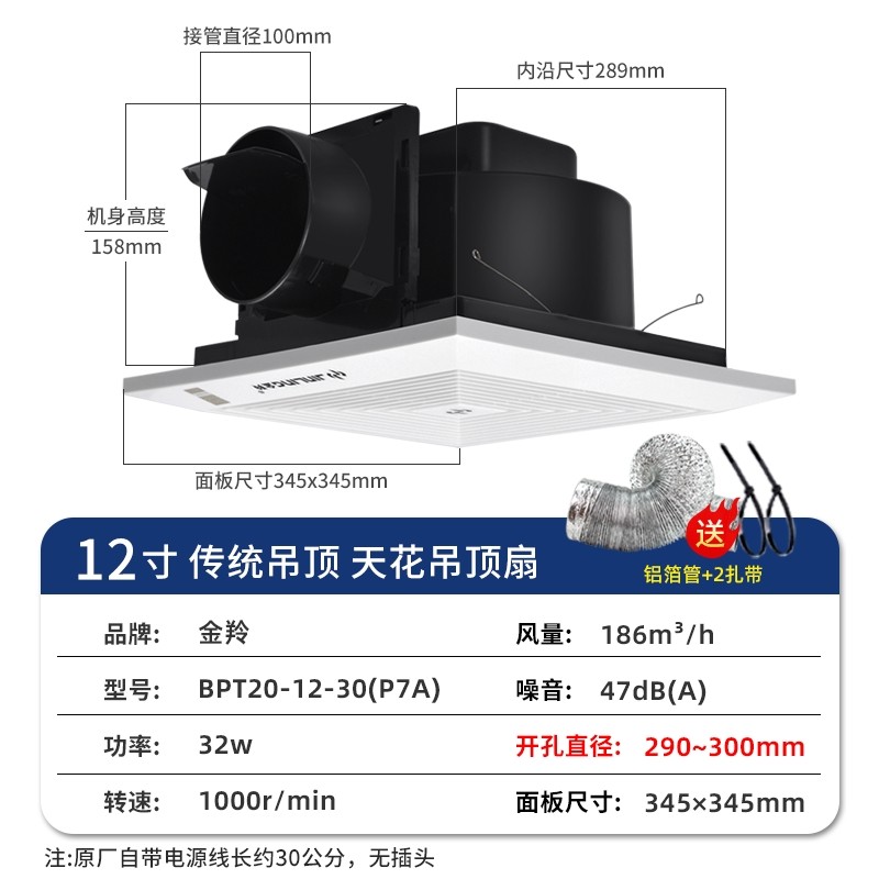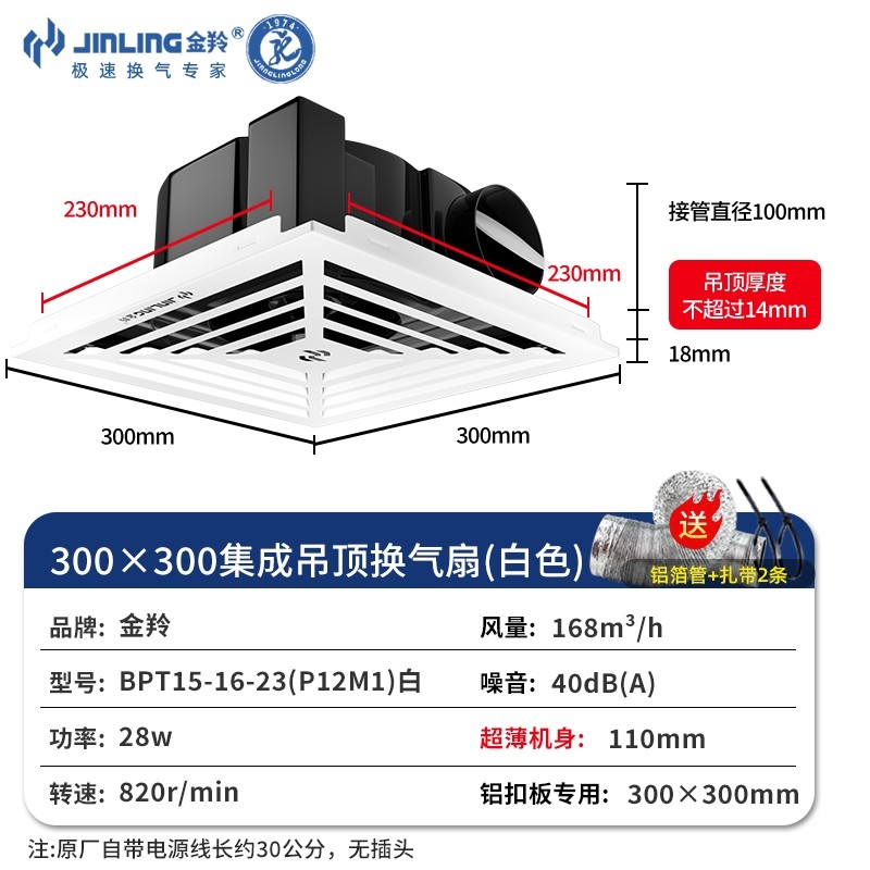 金羚铝扣板排气扇厕所集成吊顶换家用天花排风扇气扇超薄强力静音