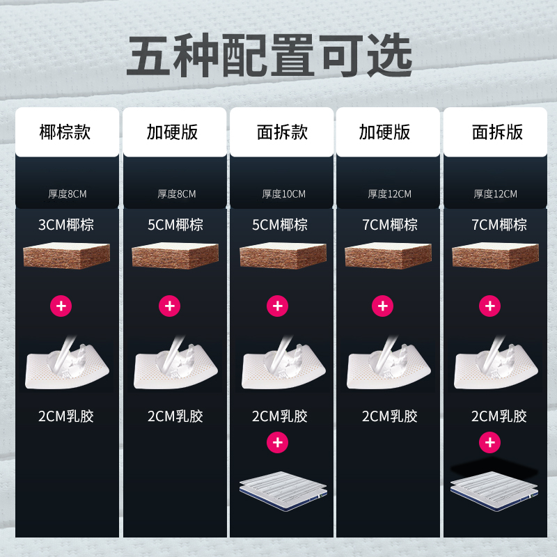 瑶海床垫硬垫椰棕垫天然乳胶护脊儿童棕榈床垫1.2米1.8m床可拆洗