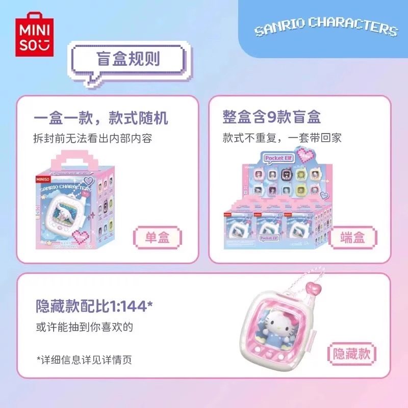 正版MINISO名创优品三丽鸥口袋精灵盲盒挂件kitty公仔潮玩女生礼