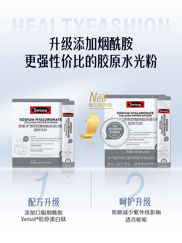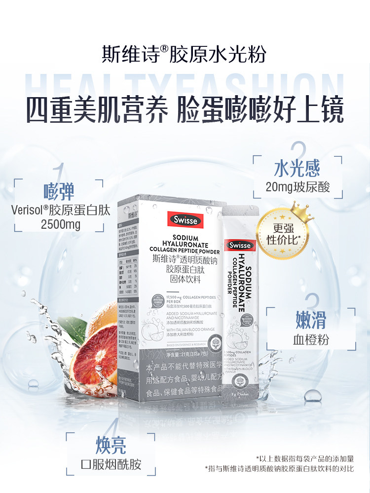Swisse斯维诗 透明质酸钠胶原肽水光粉3g*7包 口服玻尿酸血橙VC