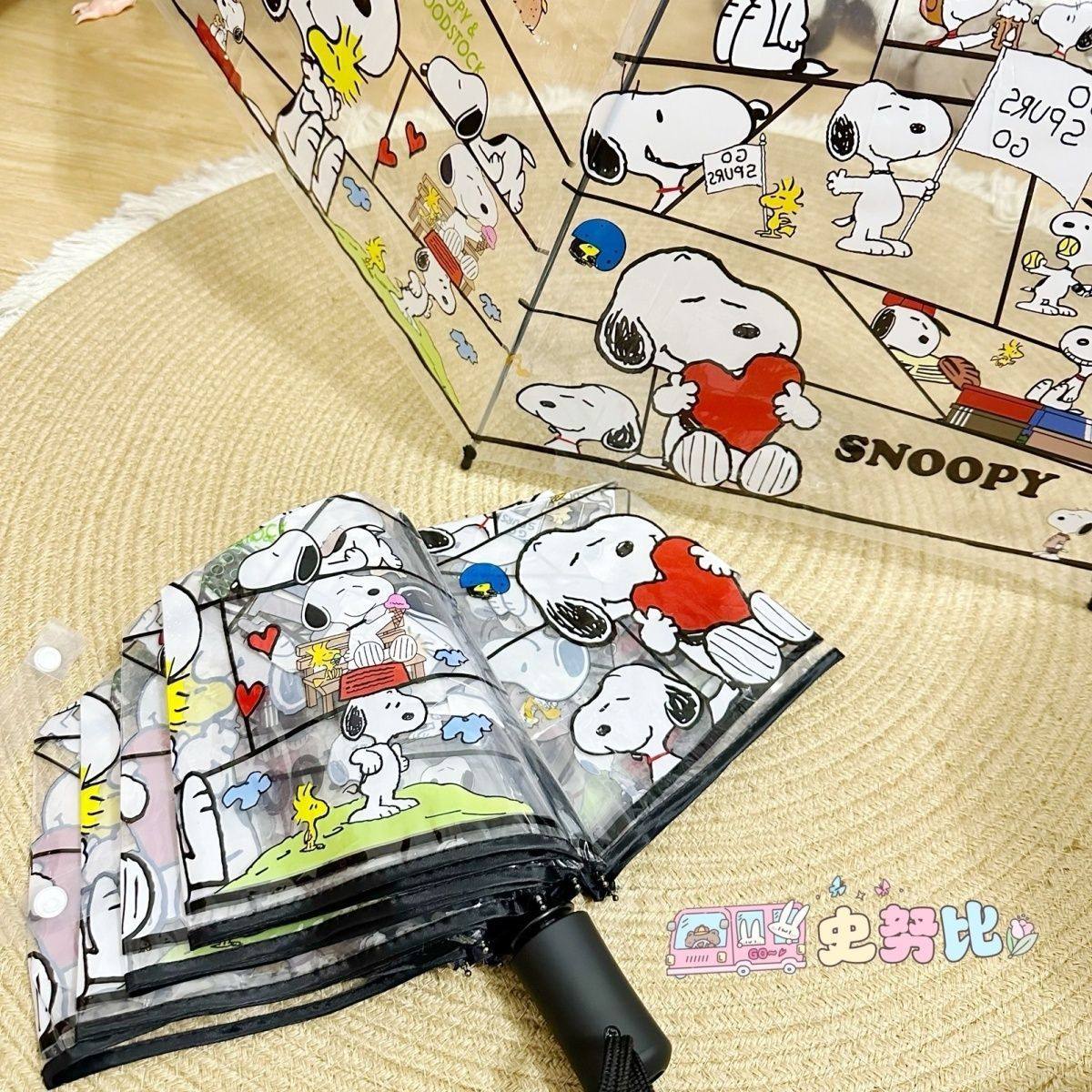 史努比透明雨伞女折叠全自动三折伞学生小清新可爱卡通加厚包邮