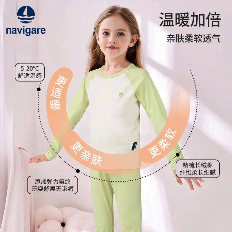 Navigare意大利小帆船女童内衣套装儿童保暖睡衣秋衣秋裤家居服
