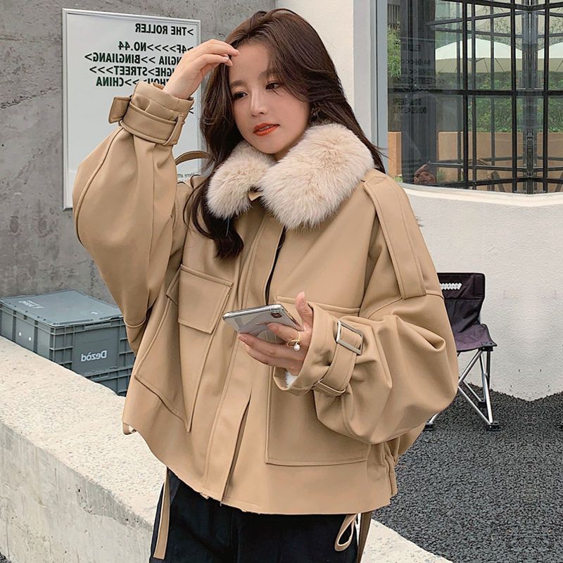 派克服pu皮衣外套女短款2025年冬季新款加绒加厚棉服皮夹克机车服