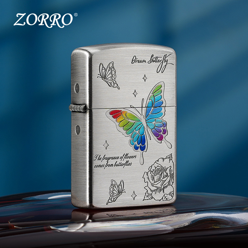 ZORRO佐罗正品纯铜砂轮防风煤油打火机二代眼睛标彩色蝴蝶玫瑰礼