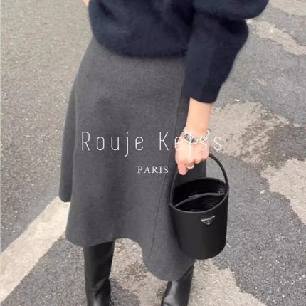 秋冬毛呢高腰显瘦A字半身裙