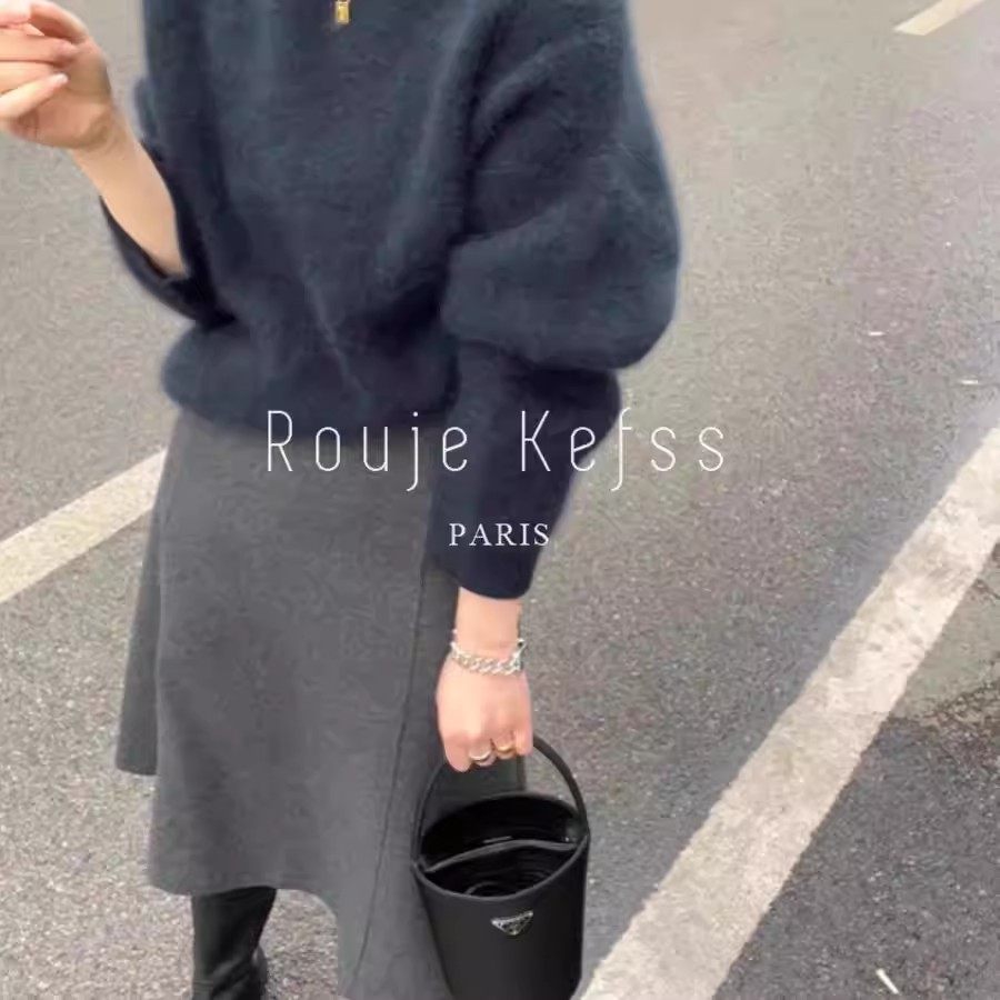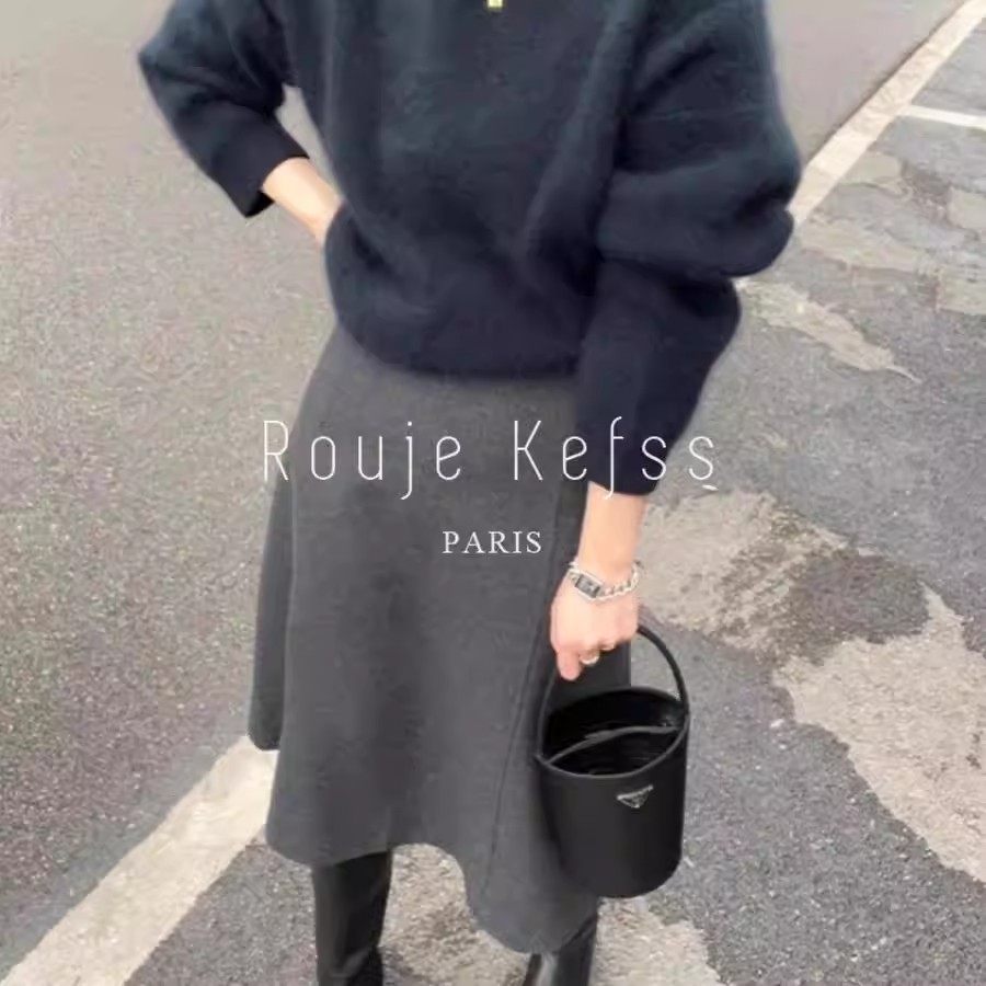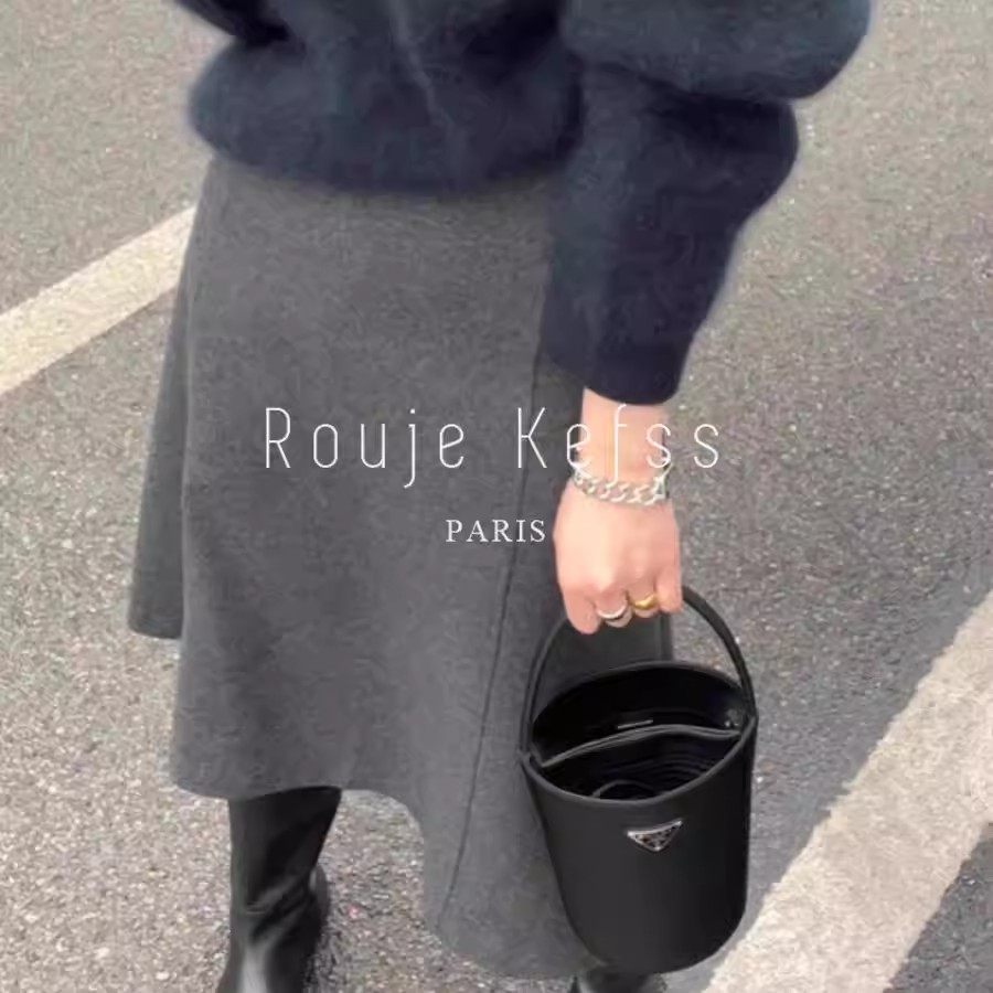 灰色毛呢半身裙秋冬女新款洋气百搭高腰a字裙垂感显瘦中长款伞裙