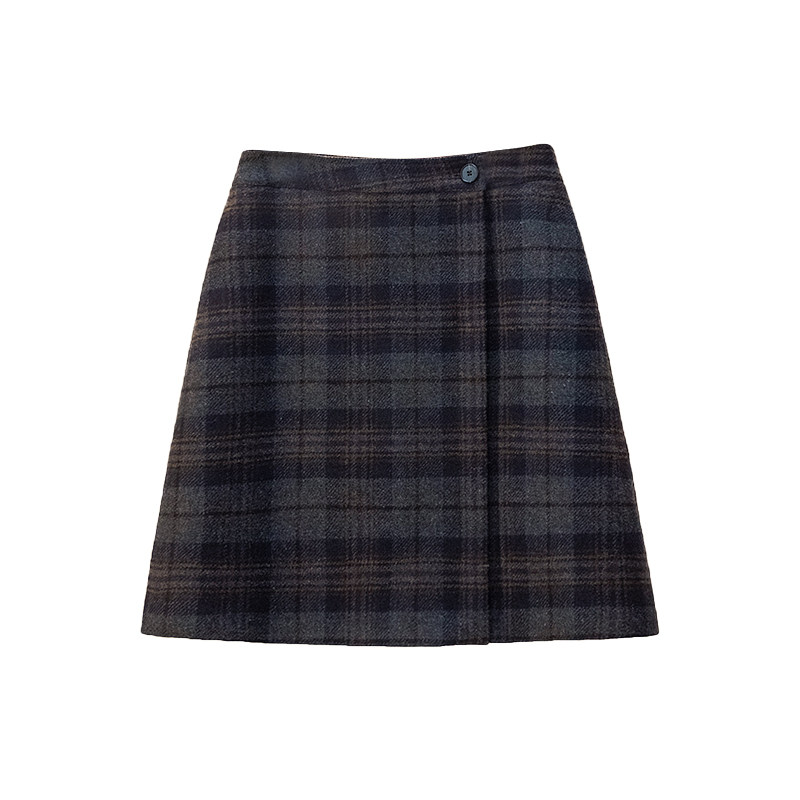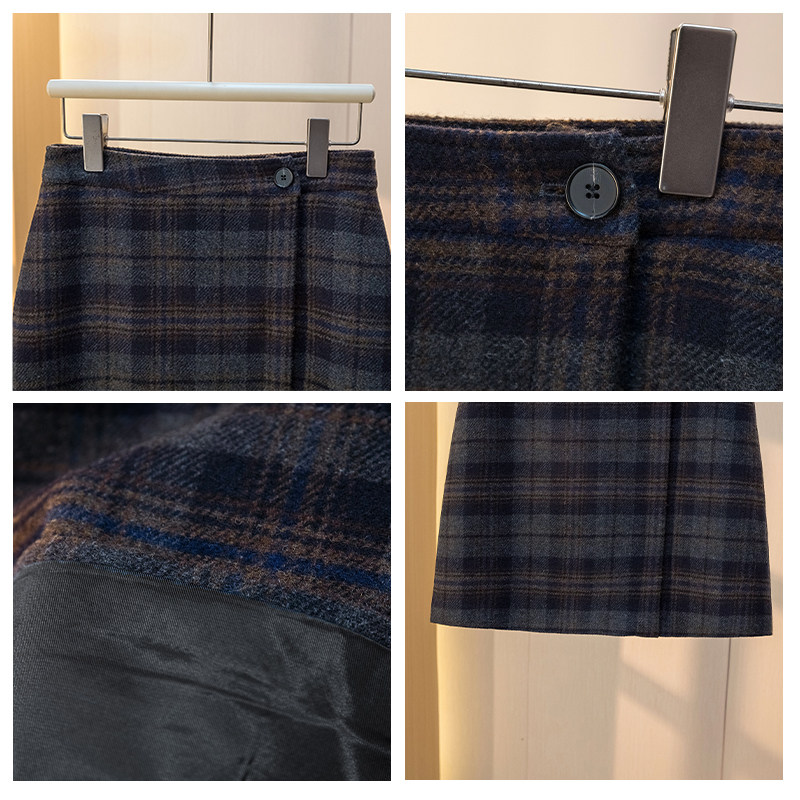 胖mm显瘦遮肚格纹半身裙短裙2025秋冬新款及膝裙大码毛呢a字中裙