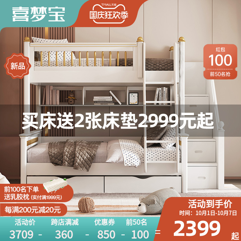 喜梦宝实木子母床双层床上下床轻奢风儿童床上下铺组合高低床