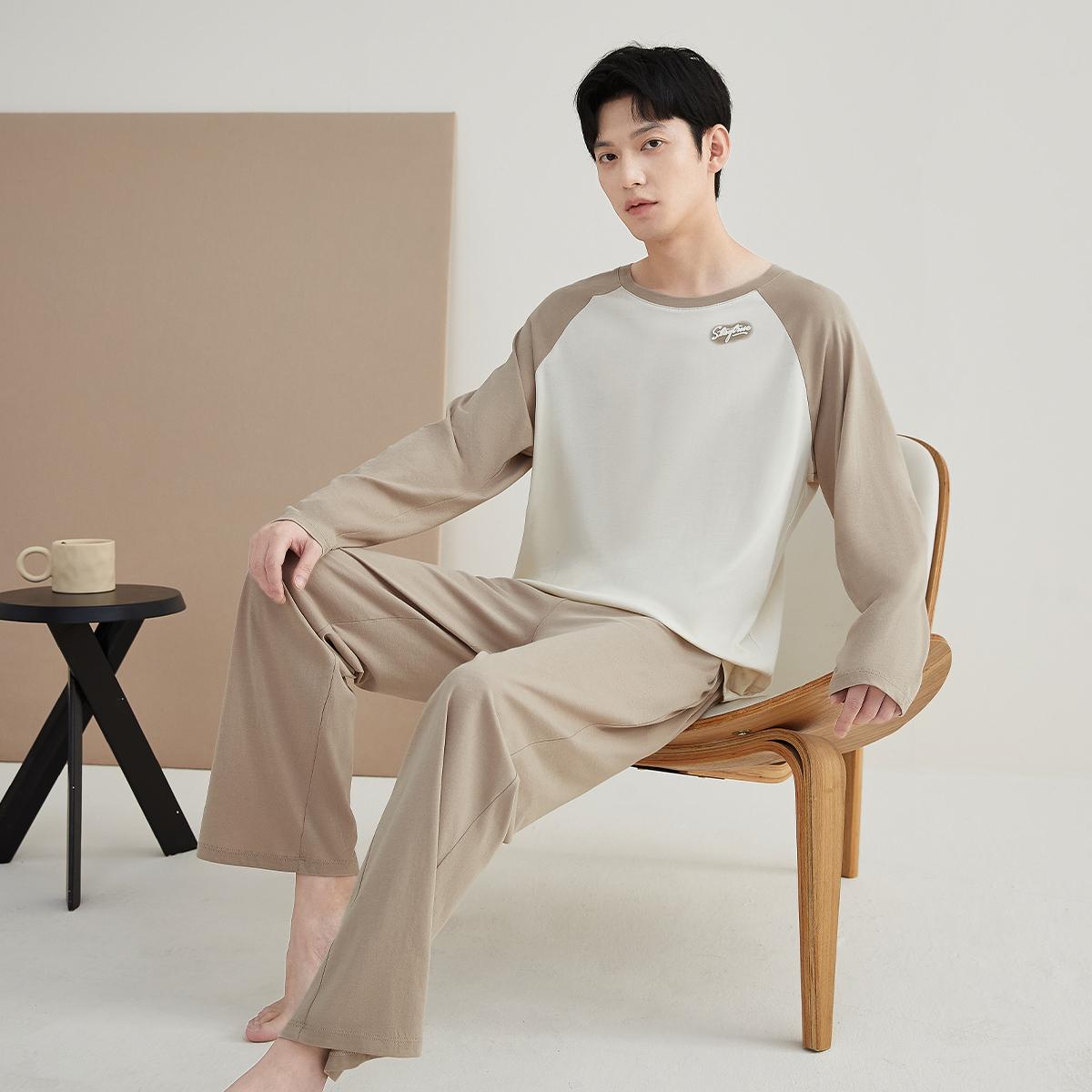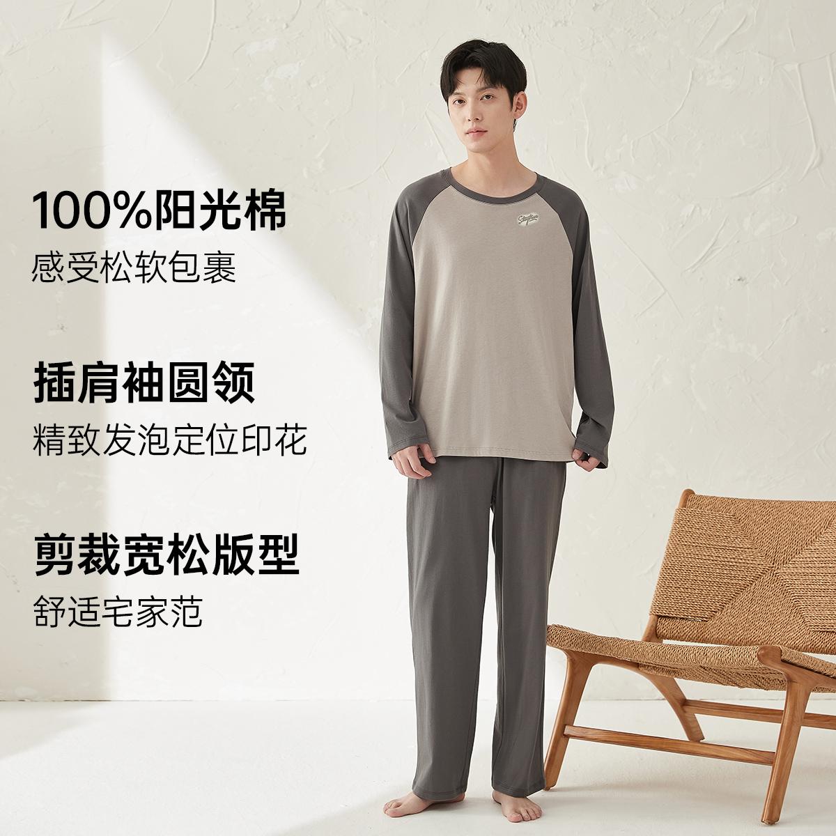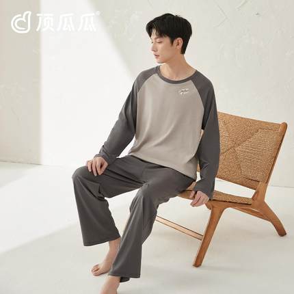 顶瓜瓜顶瓜瓜纯棉睡衣男士长袖薄款春夏季可外穿家居服套装