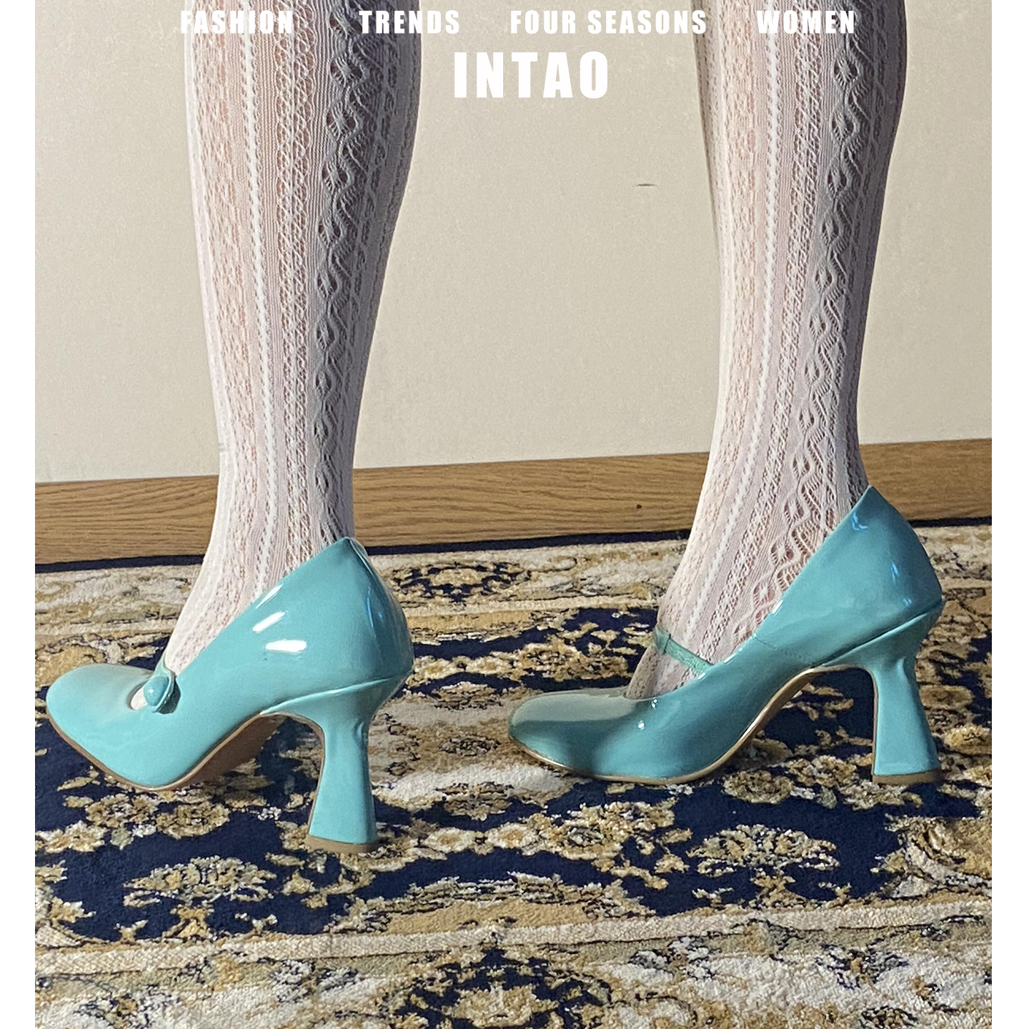 法式蓝色高跟鞋女粗跟高级感2025年秋季新款一字带漆皮玛丽珍单鞋