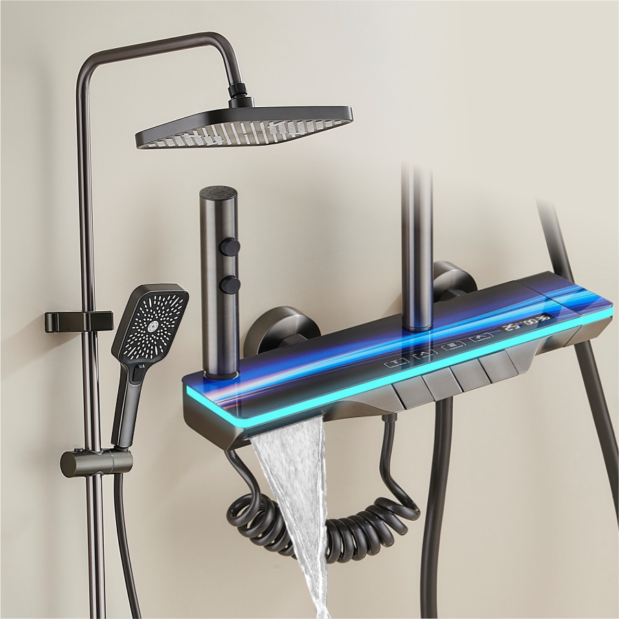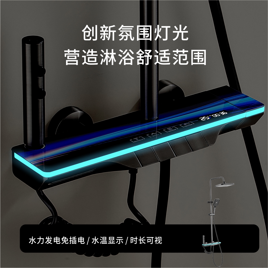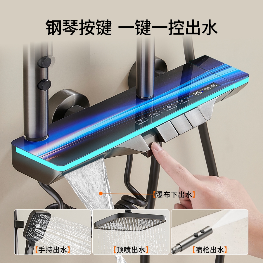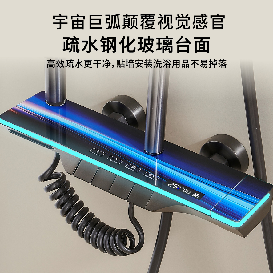 枪灰卫浴恒温花洒套装淋浴家用流光氛围灯增压沐浴器洗澡淋雨花晒