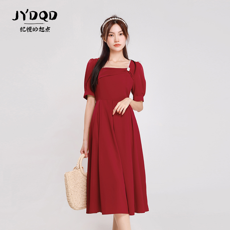 记忆的起点连衣裙2023夏季新款气质复古优雅收腰长裙潮67AX8102Z