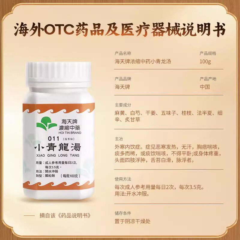 香港进口海天牌浓缩中药小青龙汤驱寒益气止咳中医馆汉方药草晶华