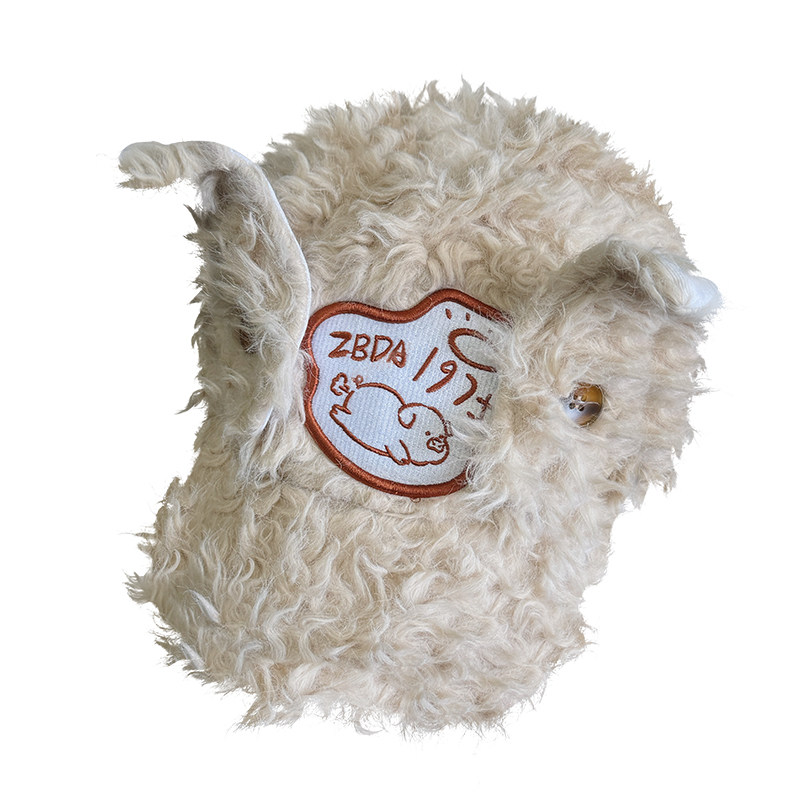 韩系甜酷辣妹毛绒兔耳朵鸭舌帽女秋冬设计感百搭潮牌显脸小棒球帽