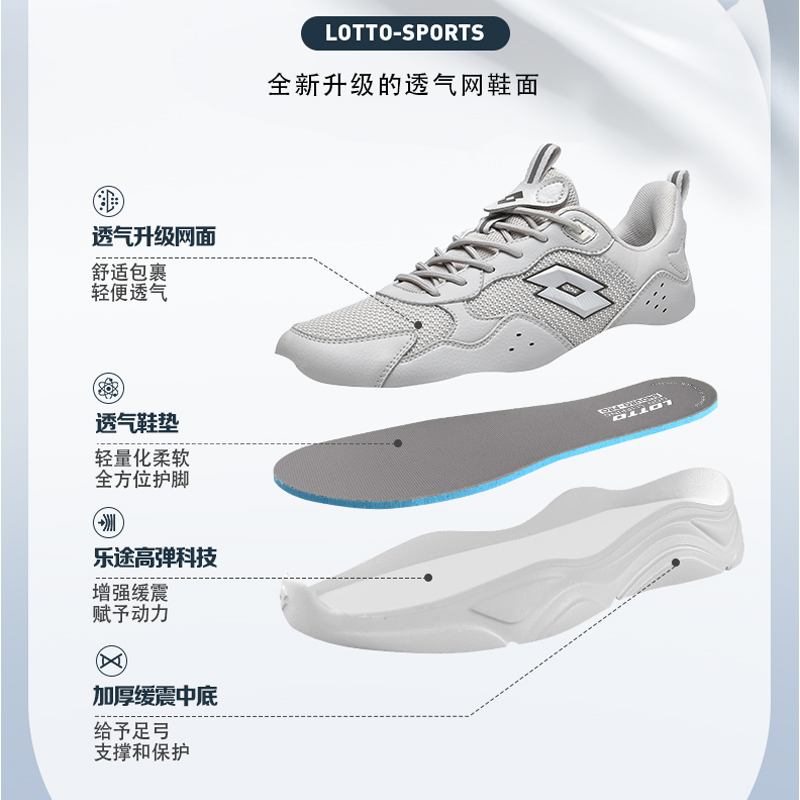 LOTTO乐途男女透气网面运动鞋2025秋冬新款软底厚底轻便休闲鞋子