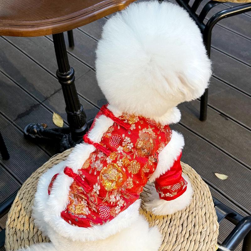 宠物狗狗新年衣服冬季保暖喜庆唐装拜年秋冬装泰迪比熊博美小型犬
