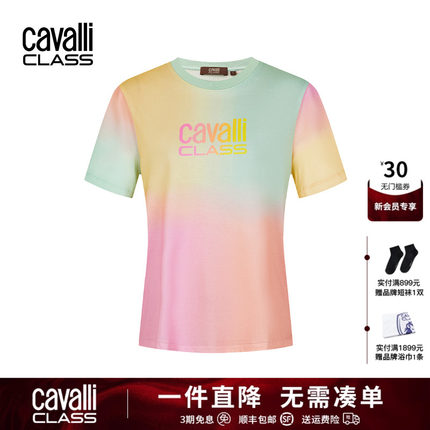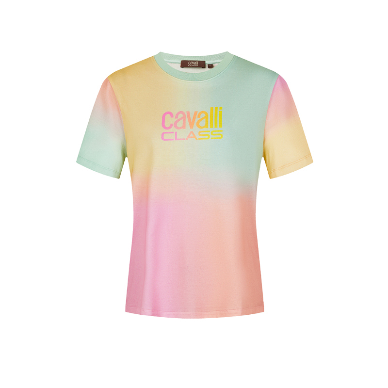 Cavalli Class卡沃利女装夏季吊染渐变短袖T恤女减龄印花纯棉上衣
