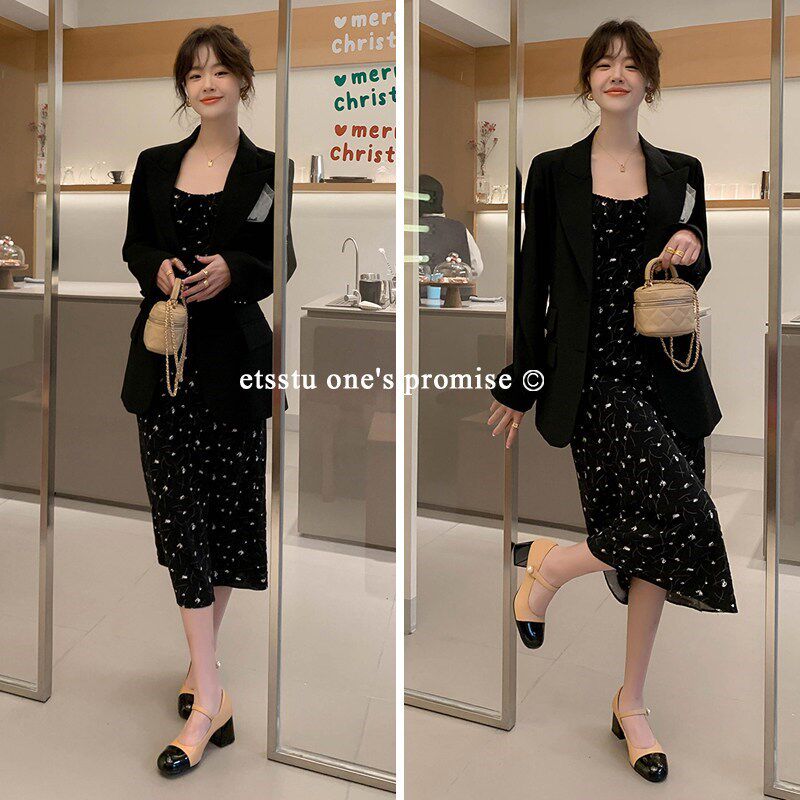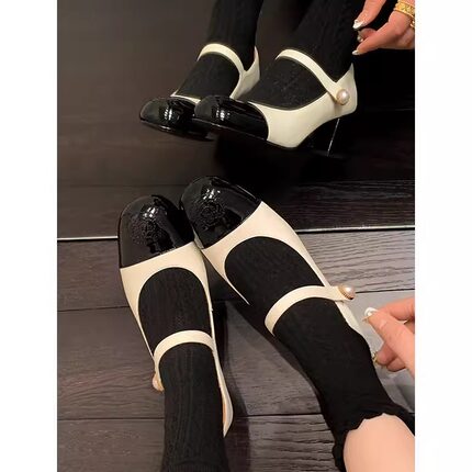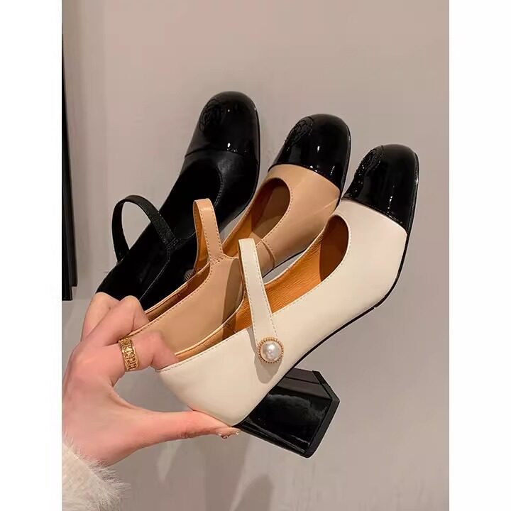 真皮法式复古小香山茶花晚风温柔配裙子粗跟高跟黑白玛丽珍单鞋女