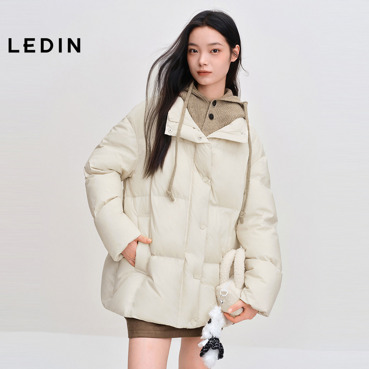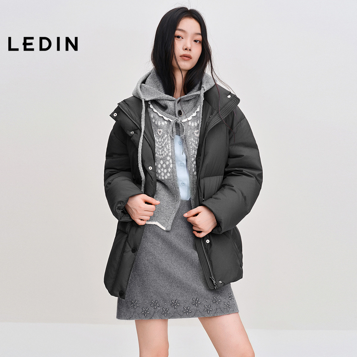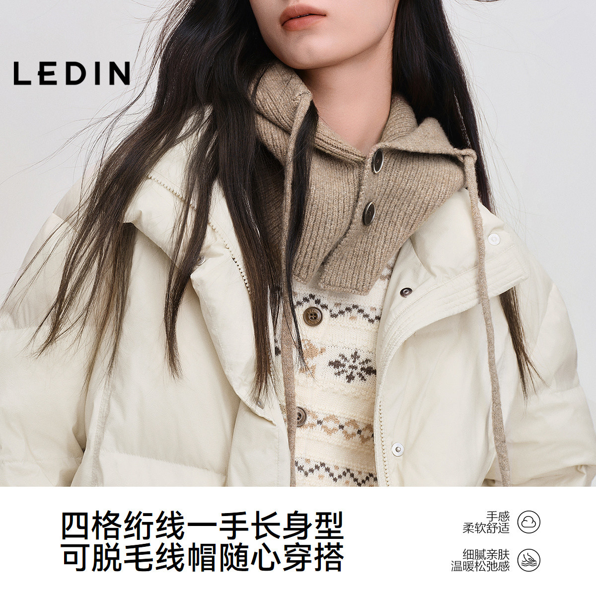 乐町一手长面包羽绒服女装25年冬季新款可脱毛线帽肌理感羽绒