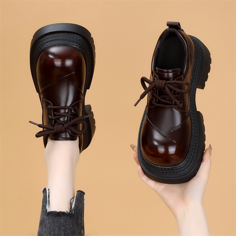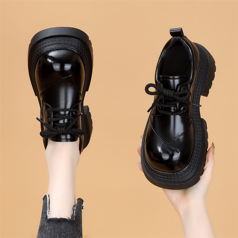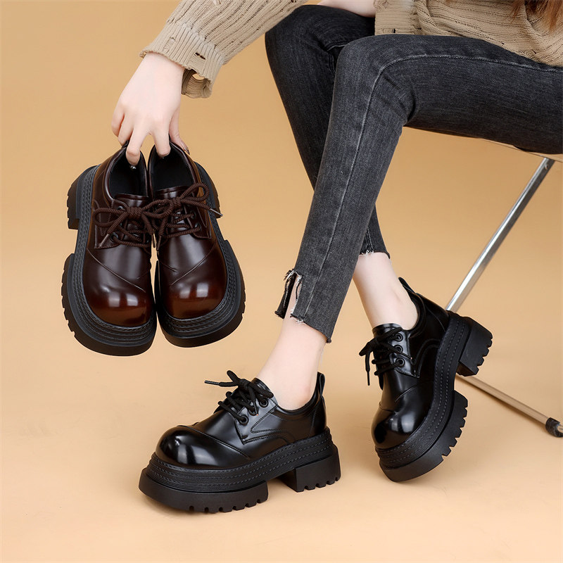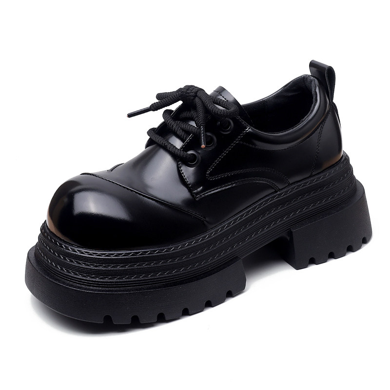 欧货厚底7cm小皮鞋女单鞋英伦风圆头系带德比鞋小个子增高乐福鞋
