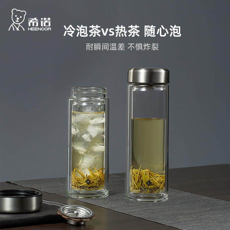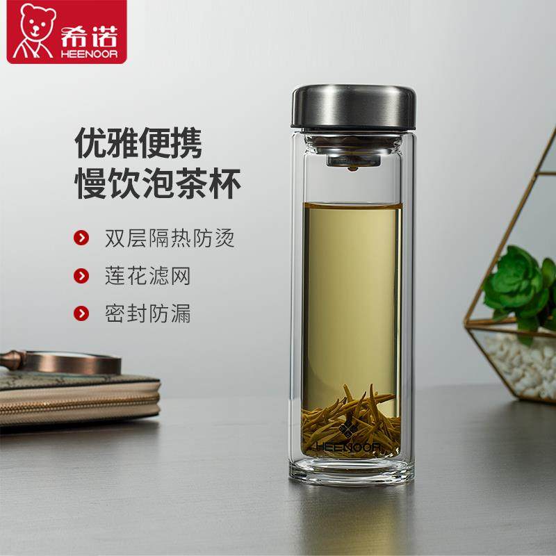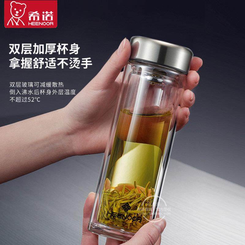 希诺玻璃杯双层防烫男女士居家办公小巧便携高硼硅防炸裂茶水杯