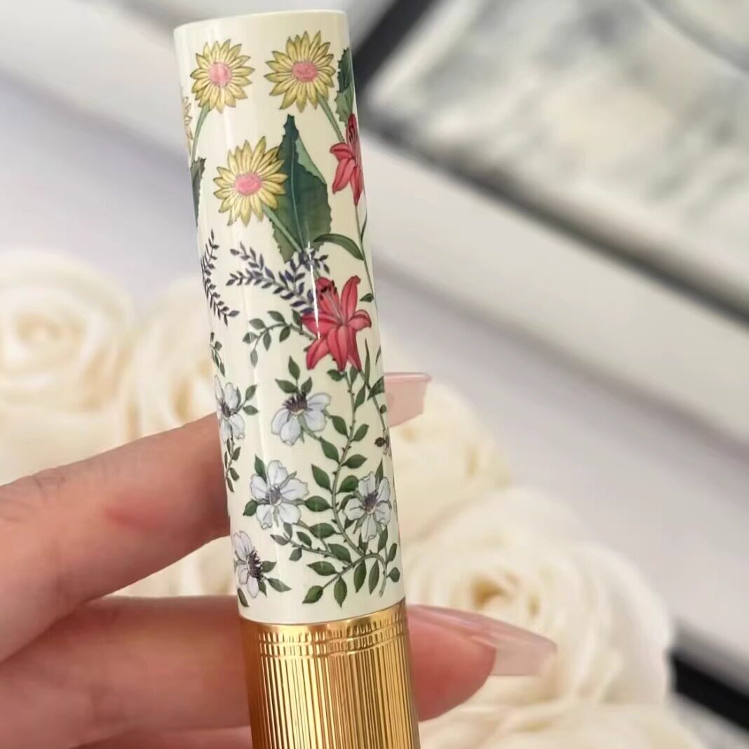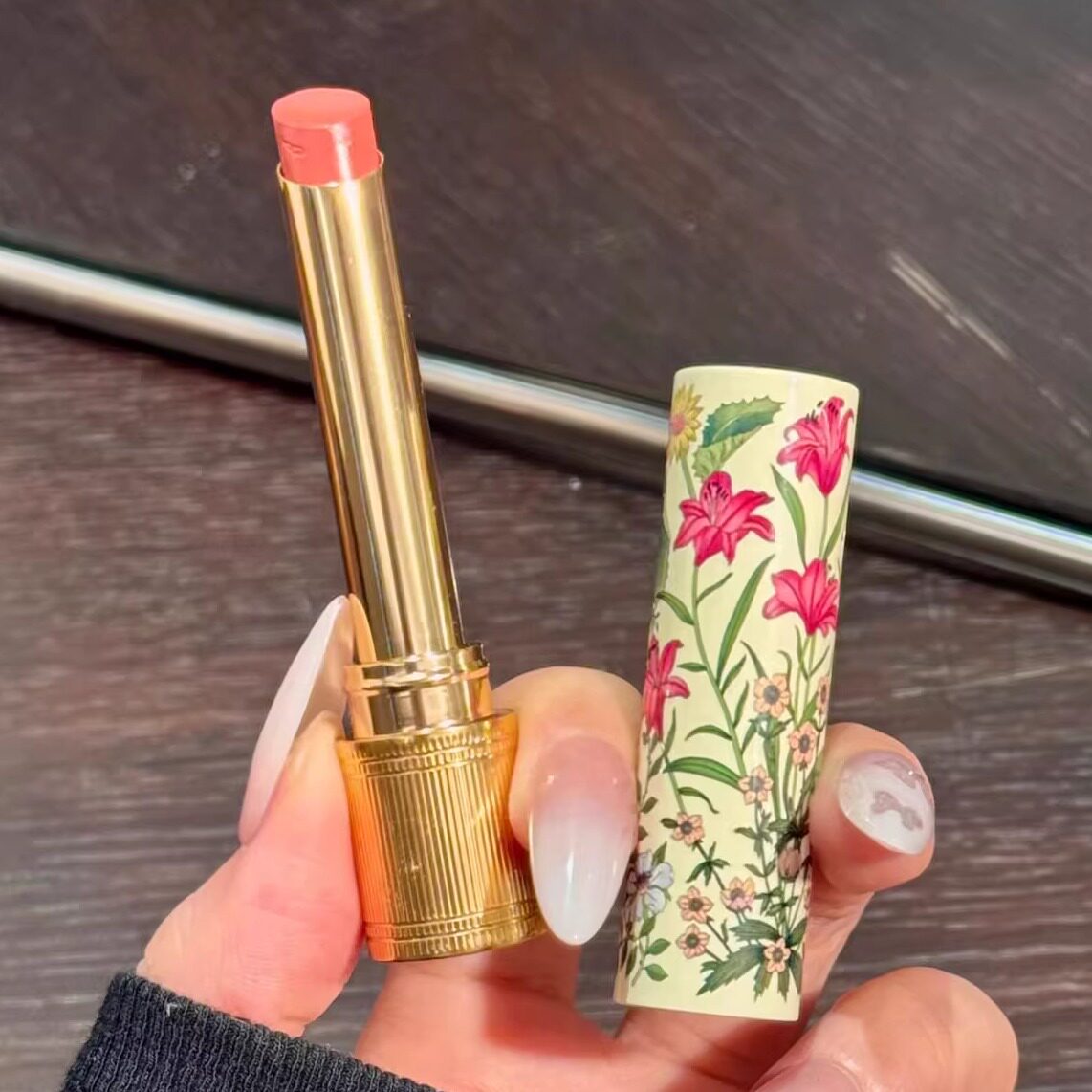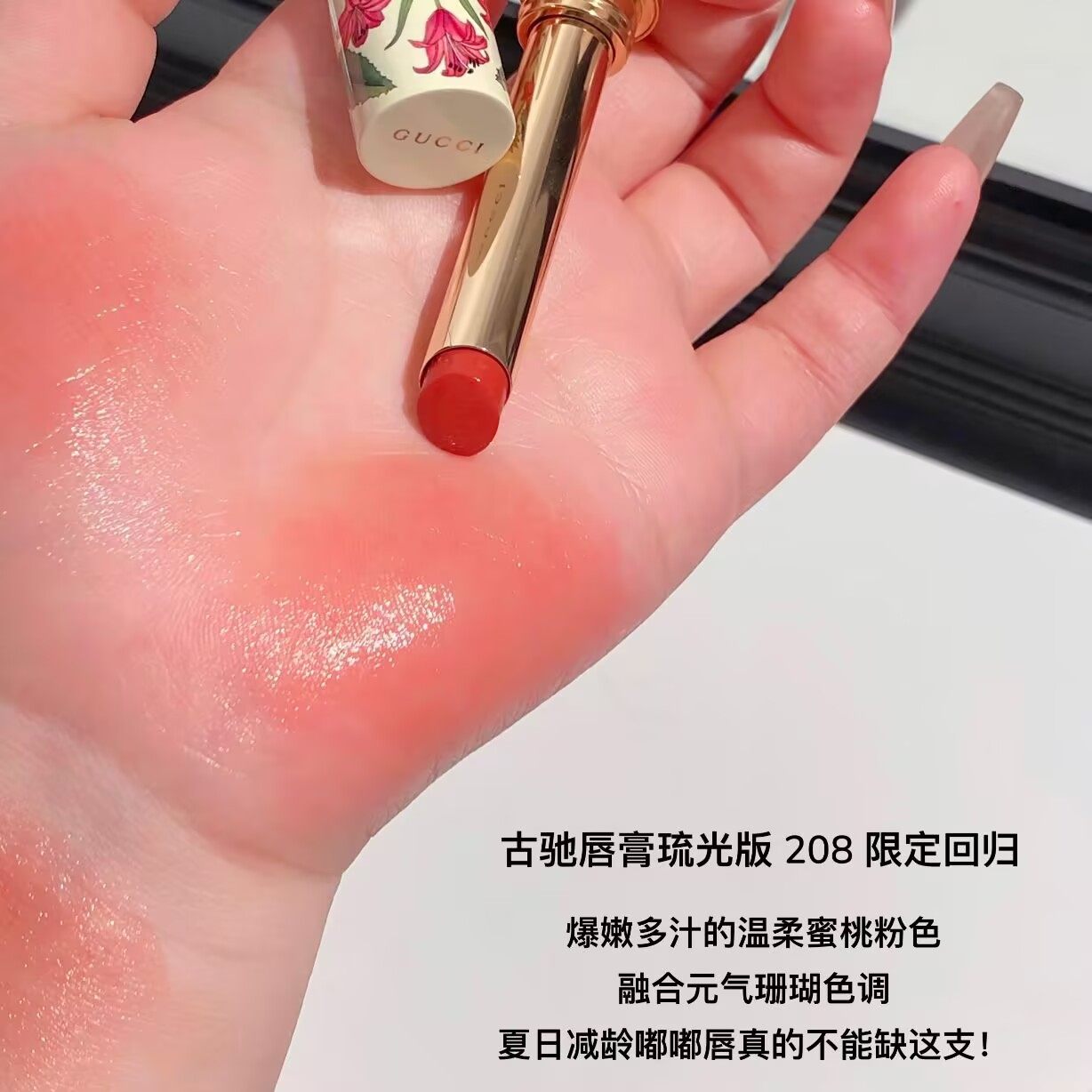 Gucci古驰花卉限定细管口红倾色琉光唇膏滋润碎花细管208晶透蜜桃