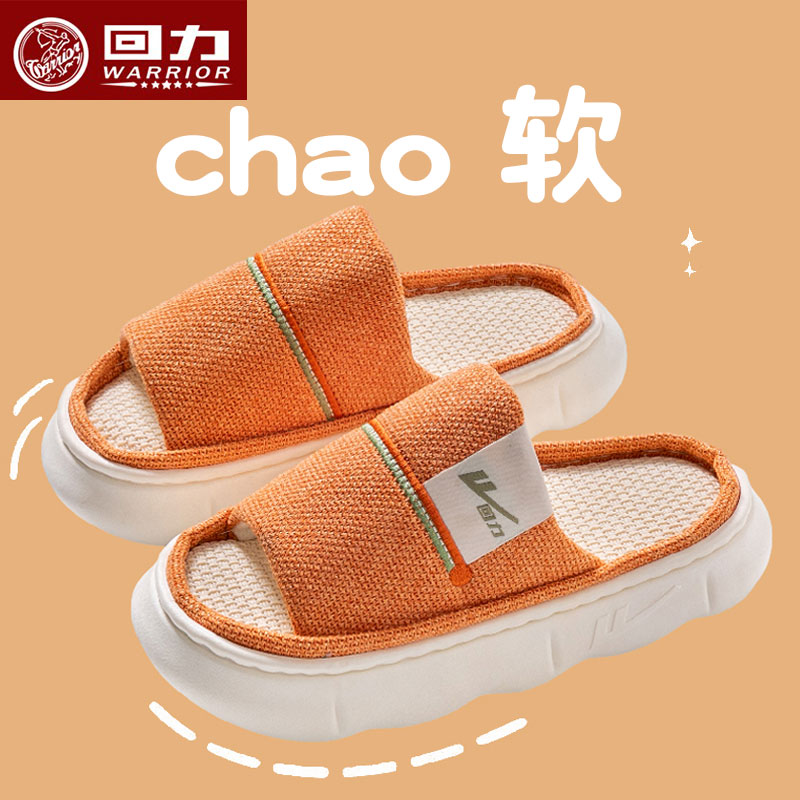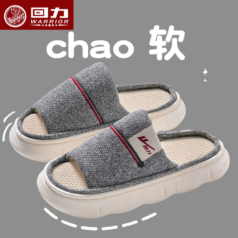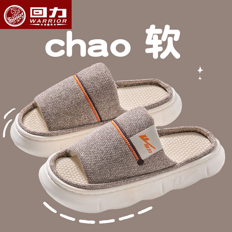 回力亚麻拖鞋男士夏季新款厚底防滑居家透气吸汗四季棉麻布拖鞋女