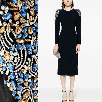 高端重工钉珠长袖连衣裙2024新款女秋冬中长款礼服端庄大气高级感