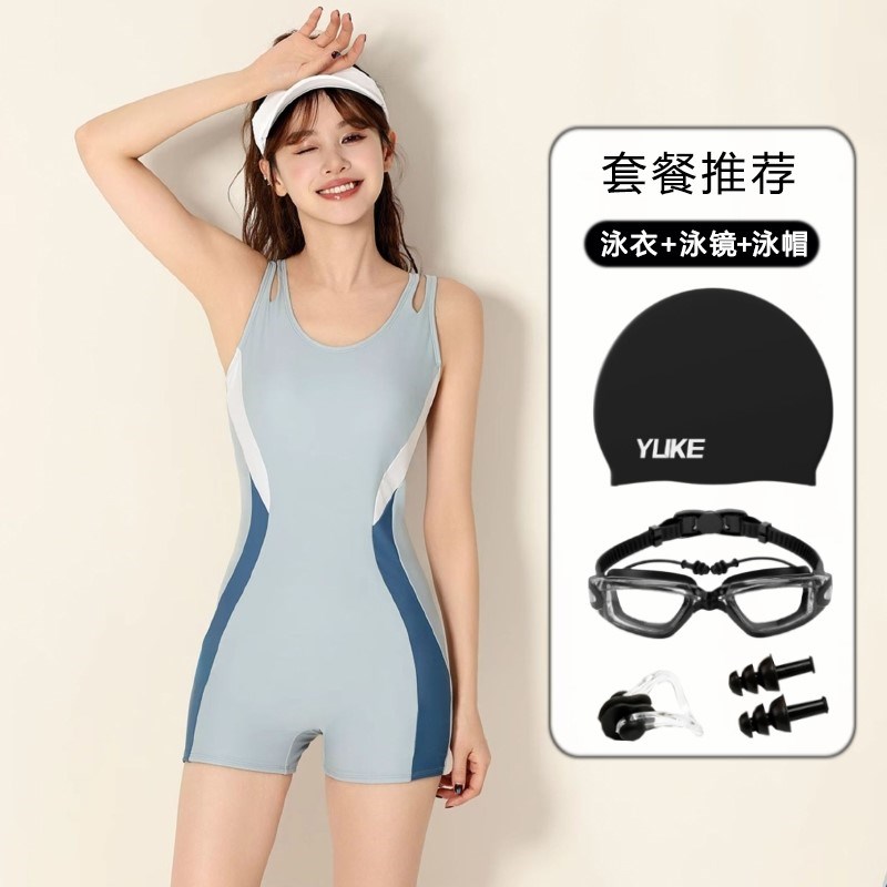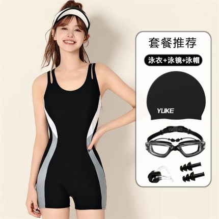 泳衣女游泳馆专用专业训练平角高级感显瘦学生连体运动款露背大码
