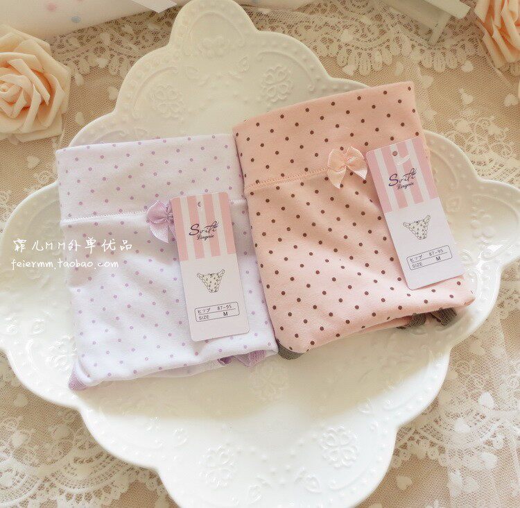 K538女士内裤日本外单中腰纯棉女式短裤条纹波点女生包臀有大码