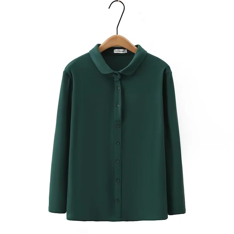 胖mm加大码女装秋季女士纯棉打底衬衫女长袖弹力洋气质娃娃领衬衣