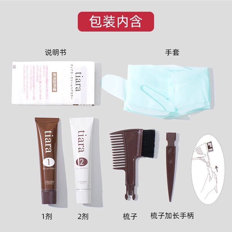 资生堂tiara染发剂植物原装进口染发膏男女专用染白发冷黑茶持久