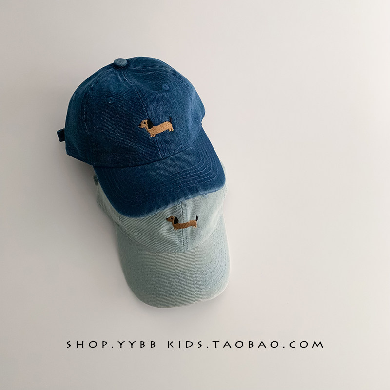 儿童帽子春秋薄款韩系复古牛仔鸭舌帽男女宝宝可爱遮阳防晒棒球帽