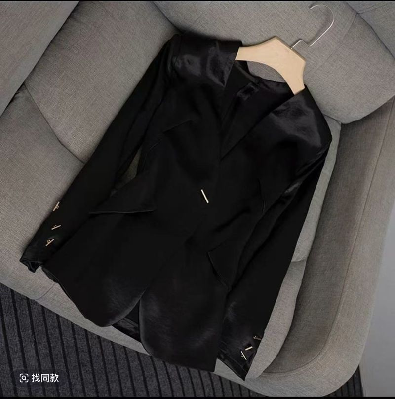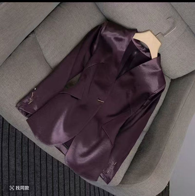 醋酸缎面小西装外套女2025春夏新款修身休闲气质短款薄款西服上衣