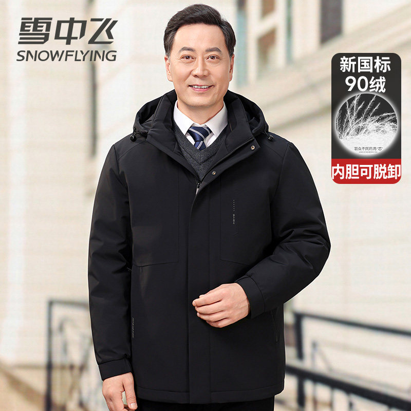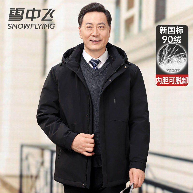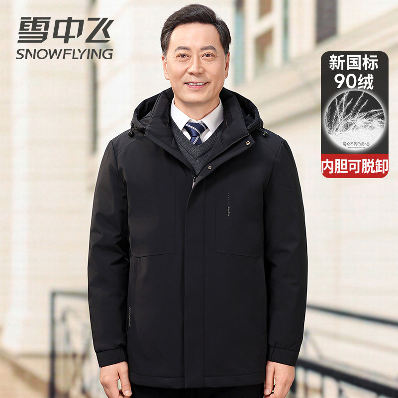 雪中飞内胆可脱卸羽绒服男款冬季外套商务休闲中老年爸爸装鸭绒袄