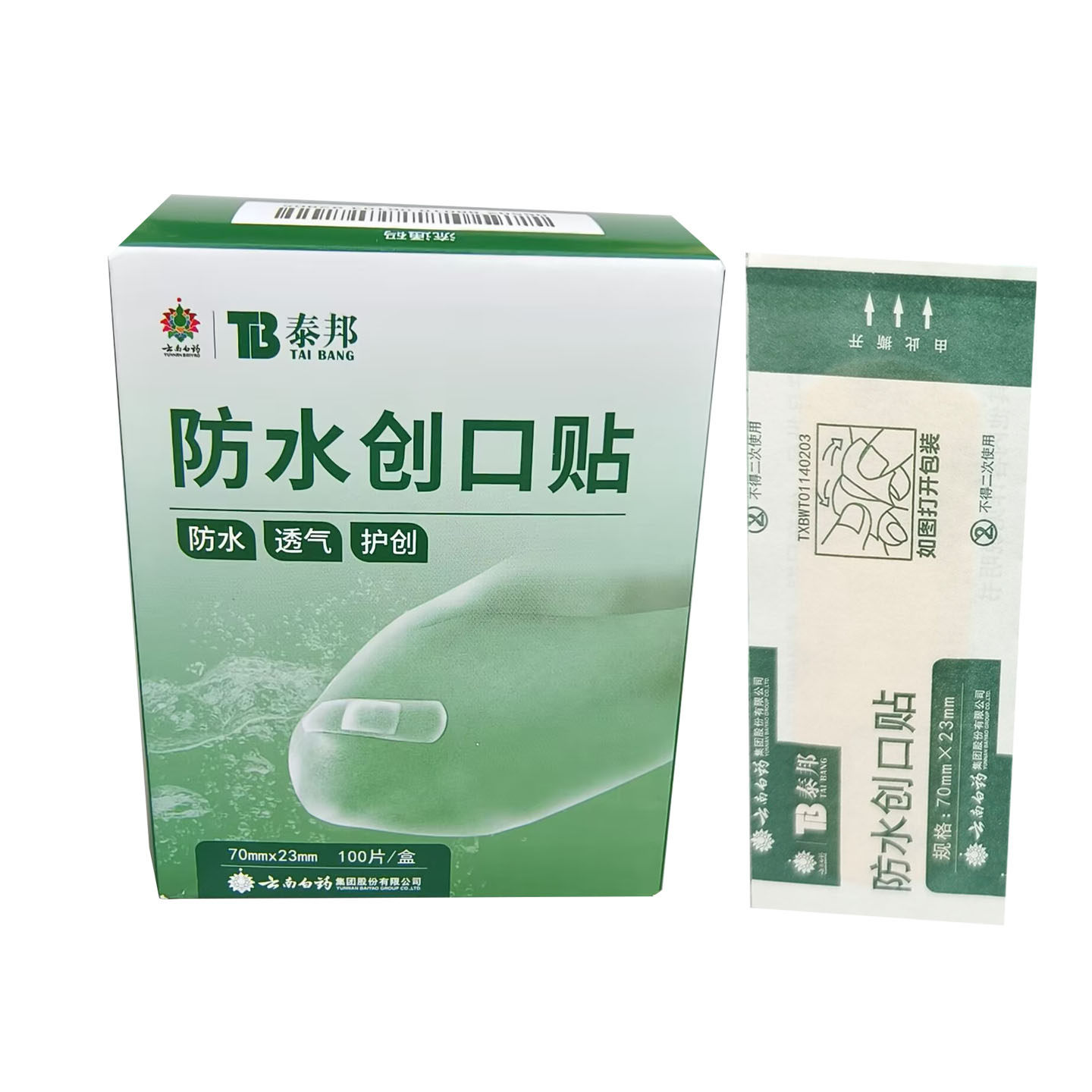 云南白药泰邦创可贴医用防水透气超薄100片防磨大号止血创口贴HH